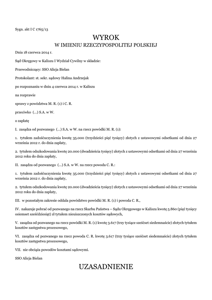 wyrok uzasadnienie - Portal Orzeczeń Sądu Okręgowego w Kaliszu