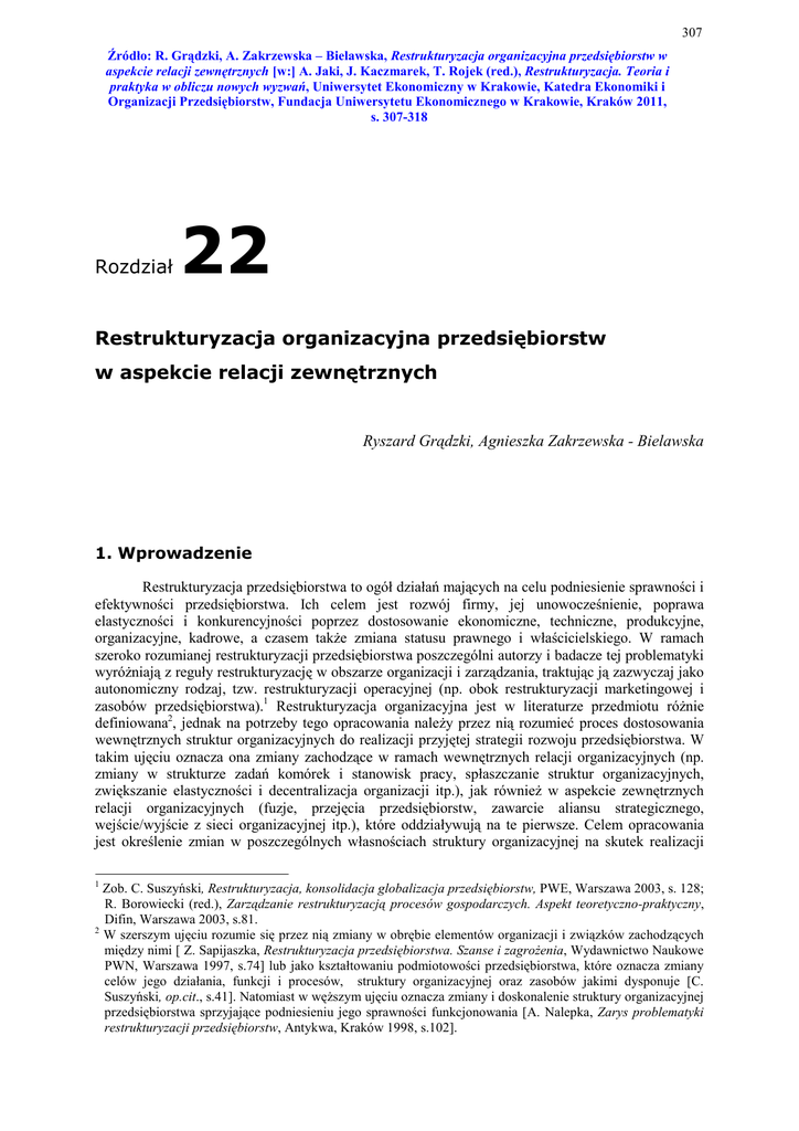 Rozdział 22 Restrukturyzacja organizacyjna przedsiębiorstw w