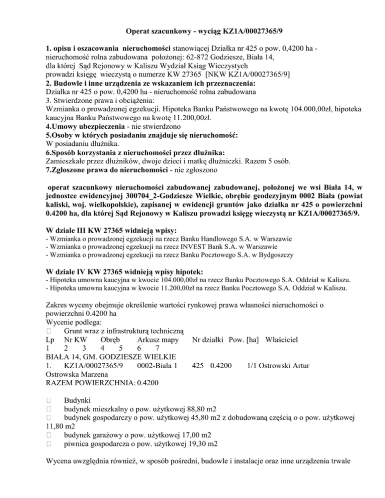 Operat szacunkowy - wyciąg KZ1A/00027365/9 1. opisu i