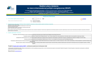 Szablon planu działania na rzecz zrównoważonej polityki energetycznej (SEAP) Oto wersja robocza dla sygnatariuszy Porozumienia , ułatwiająca gromadzenie danych. Jednakże wersja online szablonu SEAP dostępna w kąciku sygnatariuszy (obszar chroniony hasłem) pod adresem: http://members.eumayors.eu/ stanowi jedyny szablon, który wszyscy sygnatariusze muszą OBOWIĄZKOWO wypełnić (> w języku angielskim) z chwilą przedłożenia kompletnego planu SEAP (> w swoim języku krajowym). OGÓLNA STRATEGIA 1) Cel w zakresie ogólnej redukcji emisji CO2 20 Należy zaznaczyć odpowiednie pole wyboru: Redukcja bezwzględna (%) do 2020 ? Instrukcje Redukcja na mieszkańca 2) Długoterminowa wizja organu lokalnego (należy uwzględnić priorytetowe obszary działania, główne tendencje i wyzwania) Do głównych obszarów działań należą: ograniczenie zużycia energii przez odbiorców zlokalizowanych na terenie miasta rozwój zrównoważonego transportu modernizacja obiektów miejskich, rozwój systemu monitoringu zużycia energii rozwój i modernizacja systemu ciepłowniczego Jedno z głównych wyzwań stanowi zmniejszenie zużycia energii oraz ograniczenie emisji w budynkach mieszkalnych. Ponadto ważnym zagadnieniem jest modernizacja ciepłowni oraz systemu ciepłowniczego na terenie miasta. Ponadto istotne jest zwiększenie wykorzystania odnawialnych źródeł energii przez mieszkańców. 3) Aspekty organizacyjne i finansowe Koordynacja i utworzone/przydzielone struktury organizacyjne Jednostkę koordynującą stanowi Wydział Inżynierii Miejskiej Urzędu Miasta Dzierżoniowa Przydzielone zasoby ludzkie Obecnie Wydział Inżynierii Miejskiej Zatrudnia 7 osób. Podczas realizacji Planu liczba przydzielonych osób będzie zależna od poszczególnych etapów jego realizacji. Zaangażowanie zainteresowanych stron i obywateli Poszczególne działania planu angażują zarówno mieszkańców miasta będących użytkownikami energii jak i przedsiębiorstwa energetyczne działające na terenie miasta. Szacowany budżet ogólny Szacowny koszt prowadzonych działań wynosi do 158 mln. zł w tym działania nie finansowane przez Gminę Miejską Dzierżoniów. Przewidywane źródła finansowania inwestycji przewidzianych planem Środki finansowe z budżetu Miasta Dzierżoniowa przy możliwym wsparciu ze środków zewnętrznych, środki z budżetu wojewódzkiego, środki poszczególnych uczestników lokalnego rynku działania energii. Planowane środki w zakresie monitorowania i oceny W ramach monitoringu efektów działań koordynator będzie monitorował efekty prowadzenia działań poprzez wykonywanie inwentaryzacji emisji oraz sporządzanie raportów z realizacji zgodnie z harmonogramem zawartym w SEAP. Przejdź do drugiej części szablonu SEAP -> poświęconej wyjściowej inwentaryzacji emisji! OGRANICZENIE ODPOWIEDZIALNOŚCI: Wyłączną odpowiedzialność za treść tej publikacji ponoszą jej autorzy. Jej treść niekoniecznie jest zgodna ze stanowiskiem Wspólnot Europejskich. Komisja Europejska nie odpowiada za wykorzystanie w jakikolwiek sposób informacji zawartych w tej publikacji. Więcej informacji: www.eumayors.eu. Szablon planu działania na rzecz zrównoważonej polityki energetycznej (SEAP) WYJŚCIOWA INWENTARYZACJA EMISJI 1) Rok inwentaryzacji 1995 ? Instrukcje ? Współczynniki emisji W przypadku sygnatariuszy Porozumienia obliczających emisje CO2 na mieszkańca, należy sprecyzować tutaj liczbę mieszkańców w roku inwentaryzacji: 2) Współczynniki emisji Należy zaznaczyć odpowiednie pole wyboru: Standardowe współczynniki emisji zgodne z zasadami IPCC Współczynniki LCA (ocena cyklu życia) Jednostka zgłaszania emisji Należy zaznaczyć odpowiednie pole wyboru: Emisje CO2 Emisje ekwiwalentu CO2 3) Główne wyniki wyjściowej inwentaryzacji emisji Objaśnienie kolorów i symboli: Szarych pól nie można edytować Komórki zielone to pola obowiązkowe A. Końcowe zużycie energii Należy zauważyć, że jako separatora dziesiętnego używa się kropki [.]. Separatory tysięcy nie są dozwolone. KOŃCOWE ZUŻYCIE ENERGII [MWh] Paliwa kopalne Kategoria Energia elektryczna Ciepło/chłód Gaz ziemny Gaz ciekły Olej opałowy Olej napędowy Benzyna Energia odnawialna Węgiel brunatny Węgiel kamienny Inne paliwa kopalne Olej roślinny Biopaliwo Inna biomasa Słoneczna Geotermicz cieplna na Razem BUDYNKI, WYPOSAŻENIE/URZĄDZENIA I PRZEMYSŁ: Budynki, wyposażenie/urządzenia komunalne Budynki, wyposażenie/urządzenia usługowe (niekomunalne) 1 688 11 674 4 241 14 620 6 229 5 832 244 1 458 2 397 12 222 Budynki mieszkalne 19 865 49 265 58 768 463 1 157 104 629 28 625 9 242 8 026 2 139 18 883 64 593 77 369 78 855 Komunalne oświetlenie publiczne Przemysł (z wyjątkiem zakładów objętych systemem handlu uprawnieniami do emisji UE — ETS) Budynki, wyposażenie/urządzenia i przemysł razem 14 555 46 051 16 192 250 338 2 741 2 741 707 4 754 - - - 66 915 138 131 - - - 16 192 - - 380 600 - 2 235 39 378 41613 422 213 TRANSPORT: Tabor gminny Transport publiczny Transport prywatny i komercyjny Transport razem Razem 0 64 593 0 77 369 919 919 0 78 855 1 626 0 4 754 2234,76 16388,24 18623 18 623 22071 22071 22 071 0 - 0 138 131 0 - 0 - 0 - 0 0 16 192 - 0 Gminne zakupy certyfikowanej energii ekologicznej (o ile ich dokonano) [MWh]: Współczynnik emisji CO2 dla zakupów certyfikowanej energii ekologicznej (dla podejścia LCA): B. Emisje CO2 lub ekwiwalentu CO2 Należy zauważyć, że jako separatora dziesiętnego używa się kropki [.]. Separatory tysięcy nie są dozwolone. Emisje CO2 [t]/emisje ekwiwalentu CO2 [t] Paliwa kopalne Kategoria Energia odnawialna Energia elektryczna Ciepło/chłód Budynki, wyposażenie/urządzenia komunalne Budynki, wyposażenie/urządzenia usługowe (niekomunalne) 2 010 13 904 2 333 3 260 1 258 1 178 56,364 406,874907 848,538 4326,588 6 450 23 132 Budynki mieszkalne 23 659 31 883 11 871 106,867992 322,68582 37038,50129 104 881 596,75 6684,7 48 079 Gaz 