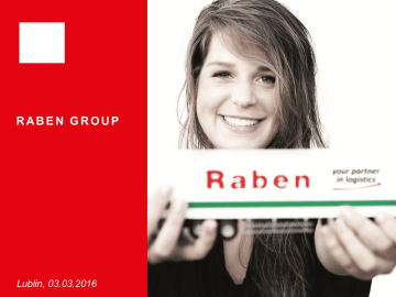 RABEN GROUP W W W . R A B E N - G R O U P. C O M Lublin, 03.03.2016 RABEN GROUP 10 krajów Europa środkowo wschodnia Family owned & managed Lat tradycji 7,500 pracowników 1,000,000 m2 Powierzchni magazynowej 6,000 Środków transportu 1 bln EUR revenue W W W . R A B E N - G R O U P. C O M 2 RABEN GROUP Serwisy W W W . R A B E N - G R O U P. C O M 3 RA BE N G ROUP Revenue per business sectors Sectors W W W . R A B E N - G R O U P. C O M 4 RABEN W LUBLINIE Porcja informacji 17 lat w Lublinie Obecna infrastruktura to ok. 18 000 m2 powierzchni magazynowych Magazyn wysokiego składu klasy A Kadra czuwająca nad sprawnym przepływem towaru składająca się z 60 pracowników magazynowych i biurowych Gama serwisów jaką obecnie świadczymy to : drobnicowa dystrybucja krajowa i międzynarodowa ok. 2 500 palet codziennie przepływa przez magazyn dostawy transportów częściowych i całopojazdowych składowanie i przygotowanie towarów do wysyłki cross dock-owy co daje tonaż na poziomie ok. 800 000 kg dziennie 70% towaru obsługiwanego przez oddział to produkty spożywcze Flota na którą składa się 120 samochodów Codziennie wysyłamy od 40 do 50 samochodów bezpośrednio do Magazynów Dystrybucyjnych Raben w Polsce W W W . R A B E N - G R O U P. C O M 5 S E RW I S D R O B N I C O W Y G R U P Y R A B E N Polska - Niemcy W W W . R A B E N - G R O U P. C O M RABEN GROUP Niemcy 1,400 pracowników 270,000 m2 Powierzchni magazynowej 27 oddziałów 1,400 środków transportu ISO 9001, AEO-F, ISO 22000 (HACCP), IFS, SQAS W W W . R A B E N - G R O U P. C O M 7 RABEN GROUP W NIEMCZECH Rozwój sieci drogowej 2005: BSV become a member of Raben Group: Aachen, Mönchengladbach, Nürnberg, Regensburg, Reichenberg, Wuppertal 2009: Cordes & Simon: Hamburg Prenzlau Stuhr Mittenwalde, Prenzlau Berlin Gütersloh Duisburg Wuppertal Mönchengladbach Aachen 2011: Wincanton: Braunschweig Mittenwalde Leipzig Eisenach Gera Koblenz Erlensee Eisenach, Erlensee Gütersloh, Hamburg, Hannover, Dresden Heilbronn, Koblenz, Köln, Leipzig, Mannheim, St. Ingbert Chemnitz 2015: HRL Reichenberg Mannheim St. Ingbert Nürnberg Heilbronn Albstadt Berlin, Braunschweig, Chemnitz, Dresden, Duisburg, Regensburg Stuhr 2015: Balter Group: Koblenz Gera 2015: Weisshaupt Albstadt 2016: Further network development W W W . R A B E N - G R O U P. C O M 8 EWOLUCJA D Y S T RY B U C J I DROBNICOWEJ Optymalizacja kosztów i czasu ( 3 modele ) W W W . R A B E N - G R O U P. C O M „MILK RUN” Customer 1 Customer 2 Supplier 4 Customer 3 Supplier 5 Supplier 1 Supplier 6 Supplier 2 Supplier 3 Customer 4 Customer 5 Odbiorcy/nadawcy W W W . R A B E N - G R O U P. C O M 4 P L AT F O R M Y Customer 1 Szczecin Customer 4 Customer 2 Customer 3 Wrocław Customer 5 Customer 6 Supplier 9 Wahadła krajowe Wahadła międzynarodowe Customer 7 Odbiory/dostawy Odbiorcy/nadawcy Terminale Raben W W W . R A B E N - G R O U P. C O M Supplier 8 Supplier 9 G AT E WAY Supplier 5 Customer 1 Supplier 2 Supplier 3 Supplier 4 Supplier 6 Supplier 1 Customer 4 Customer 2 Customer 3 Supplier 7 Customer 5 Customer 6 Wahadła krajowe Wahadła międzynarodowe Customer 7 Odbiory/dostawy Odbiorcy/nadawcy Terminale Raben W W W . R A B E N - G R O U P. C O M G AT E WAY • Przesyłki eksportowe konsolidowane są w Platformie w Bielanach Wrocławskich ( docelowo w Legnicy ) • Bezpośrednie połączenia do 27 terminali Grupy Raben oraz kilku terminali Partnerskich • 80 % przesyłek z Polski trafia bezpośrednio do terminali dostarczających • Możliwość wykorzystania naczep z podwójną podłogą • Zastosowanie kontenerów jako wahadła • Jak najmniej przeładunków w Niemczech • Dostawa 48 h door to door • Dostawa do godziny 10:00 AM i 12:00 AM • Dostawa do sieci handlowych w awizowanych slotach • Oszczędność kosztów : • Eliminacja przeładunków w DE • Ograniczenie dojazdów do dalekich stref • Wahadła organizowane w kółkach • Efekt synergii dla konsolidacji w jednej platformie • Większa kontrola przesyłek poprzez bezpośrednie kontakty z oddziałami • Jedno systemowe rozwiązanie dla Polski i Niemiec W W W . R A B E N - G R O U P. C O M SYST EMY IT W W W . R A B E N - G R O U P. C O M ZLECENIA PRZESYŁEK Integrator ( od zlecenia do potwierdzenia dostawy ) 1. Wprowadzenie zlecenia Poniedziałek godz. 10.00 2. Odbiór przesyłki – Poniedziałek godz. 15.00 3. Konsolidacja przesyłek w Bielanach – Wtorek 02:00 7. Potwierdzenie dostawy w systemie T&T – Czwartek godz. 10.00 4. Wyjazd wahadła do Niemiec – Wtorek 5.00 6. Dostawa do finalnego Klienta w Niemczech – Środa godz. 13.00 W W W . R A B E N - G R O U P. C O M 5. Przeładunek w Niemczech – Wtorek 23.00 MYRABEN.COM Jedna platforma, wiele możliwości Platforma która pozwala na szybkie śledzenie przesyłek w dystrybucji drobnicowej krajowej i międzynarodowej Log in page W W W . R A B E N - G R O U P. C O M 16 MYRABEN.COM Różne role Customer Customer of Customer Customer of Network Customer of Holding Customer of Partner W W W . R A B E N - G R O U P. C O M 17 PRZESYŁKI DO NIEMIEC Z W O J E W Ó D Z T WA LUBELSKIEGO 2010 - 2015 W W W . R A B E N - G R O U P. C O M SOLUTION DESIGN Serwis drobnicowych dostaw do/z Niemiec na przykładzie 3 klientów W W W . R A B E N - G R O U P. C O M K L I E N T I ( P O D K A R PA C I E ) Import and export to Germany Obsługa 30 dostawców klienta na terenie Niemiec Odbiór ok. 28 mplt jeden raz w tygodniu Proces zlecenia importowego : Dzień A -1 – zlecenie w systemie Dzień A - odbiór towaru do godziny 16:00 na terenie Niemiec Dzień B – konsolidacja towaru w Bielanach Wrocławskich Dzień C – dostawa do klienta w godzinach porannych Korzyści : Czas – odbiór jednego dnia pojedynczych palet w 30 miejscach na terenie Niemiec Dostawa całości drobnicowego wolumenu bezpośrednio na produkcję do klienta o 6:00 rano po 48 godzinach od momentu odbioru Optymalizacja kosztowa transportu poprzez zastosowanie bezpośredniego połącz