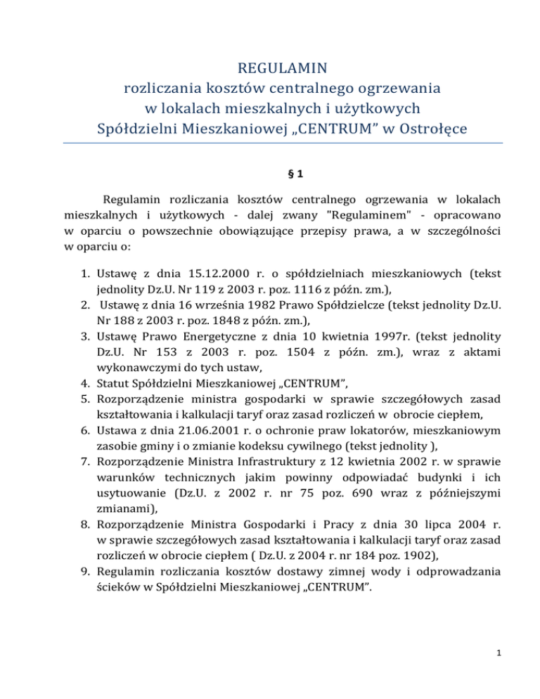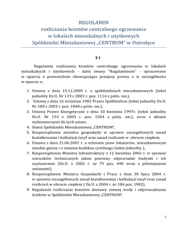 REGULAMIN rozliczania kosztów centralnego ogrzewania w