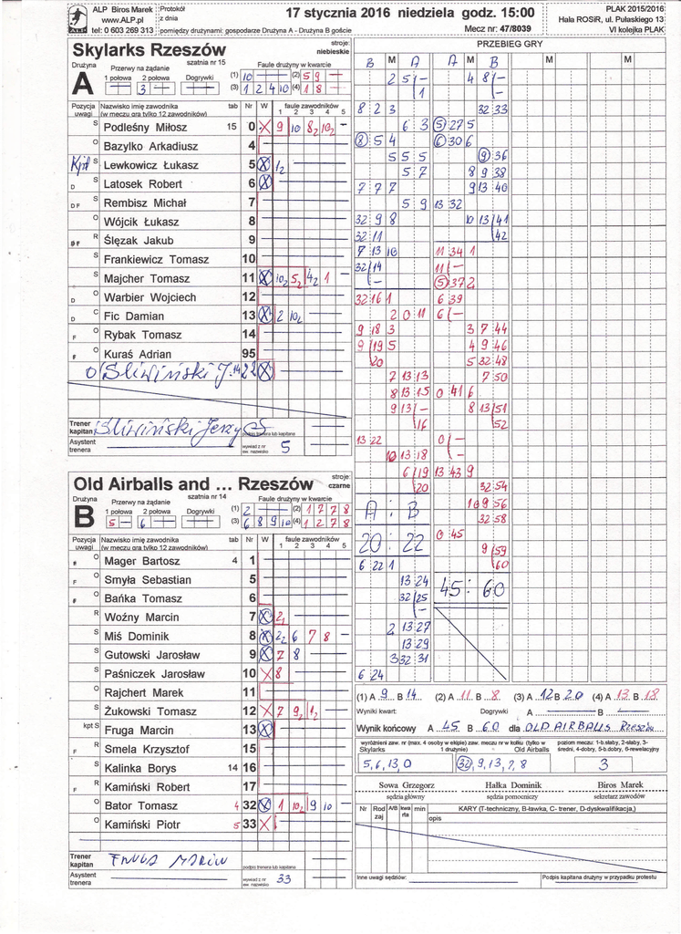 -t -F-ru-g-a--M-a-r-c-c-in----------t-1-3+~~,'--I---4+'--'+---t----lIWYnik końcowy A ...45 B ..LQ dl~ .()t.P..B.u..ąpt.l.j