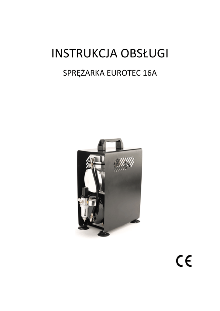 INSTRUKCJA OBSŁUGI SPRĘŻARKA EUROTEC 16A Dziękujemy za zakup sprężarki serii Eurotec. Przed jej uruchomieniem prosimy o zapoznanie się z niniejszą instrukcją aby wykorzystać jej zalety jak najlepiej Właściwości kompresora: 1. 2. 3. 4. 5. 6. Zbiornik wyrównawczy Manometr, filtr powietrza oraz regulator ciśnienia Kompresor tłokowy, bez-olejowy Funkcja autostart i autostop Zabezpieczenia przeciążeniowe i termiczne Niski poziom hałasu Zastosowanie Sprężarka ma szerokie zastosowanie przy produkcji wyrobów artystycznych, przemysłowych, w zakładach usługowych w kosmetyce, zdobieniu paznokci, makijażu, a nawet elementów pojazdów samochodowych i modeli redukcyjnych. Dane techniczne: Model Volt Watt Wydajność litry 16A 230 135 23 Ciśnienie BAR 4 Zbiornik wyrównawczy litry 2.5 Hałas dB (A) 1m Waga kg. 53 8,5 Sposób użytkowania: Zainstaluj sprężarkę na równej powierzchni w dobrze przewietrzanym pokoju z odpowiednią przestrzenią. Temperatura pokoju nie powinna przewyższyć 35 ° C. 1. Usuń ochraniacze. 2. Przykręć śrubę na regulatorze. 3. Połącz aerograf i sprężarkę z wężykiem. Początek działania Podłącz sprężarkę do zasilacza. Włącz sprężarkę przyciskiem on/0ff. Sprężarka jest połączona z automatycznym przełącznikiem shut-off. Przełącznik shut-off automatycznie wyłącza motor po tym, jak tylko ciśnienie osiągnie wymagane maksimum. Motor automatycznie włączy się ponownie kiedy ciśnienie osiąga 3 bary. Pożądane robocze ciśnienie może zostać ustawione za pomocą regulatora ciśnienia. Robocze ciśnienie jest wskazane na ciśnieniomierzu 1. Pociągnij gałkę w górę. 2. Zwiększając ciśnienie: Obróć gałkę zgodnie z ruchem wskazówek zegara. Redukując ciśnienie: Przekręcić gałkę przeciwnie do ruchu wskazówek zegara. 3. Pchnij gałkę w dół po tym, jak pożądane robocze ciśnienie zostało ustawione. Manometr będzie pokazywał aktualne ciśnienie. Zanim podłączysz aerograf, upewnij się, że ciśnienie robocze ustawione jest na poziome zaleceń producenta aerografu. Co miesiąc: 1. Przeprowadzają oględziny elementów raz na miesiąc. Zwróć szczególną uwagę na połączenia i śruby czy się nie rozluźniły i skontroluj ogólny stan wężyków ciśnieniowych. 2. Spuść skroploną wodę ze zbiornika: poprzez poluzowanie śruby osuszania. Zbiornik powinien być pod ciśnieniem podczas tego postępowania. (rys.1) 3. Spuść skroploną wodę z reduktora. Wciśnij gałkę i przytrzymaj dopóki woda nie wypłynie. Gdy woda została osuszona puść gałkę. Gałka zamyka separator wody autonomicznie. Zbiornik powinien być pod ciśnieniem podczas tego postępowania.(rys.2) Rysunek 1 Rysunek 2 GWARANCJA Gwarantujemy, że zakupiony Kompresor nie ma żadnych wad fabrycznych ani materiałowych i udziela się gwarancji na okres 12 miesięcy od daty dokonania zakupu. Każda część, która okaże się wadliwa w tym czasie zostanie bezpłatnie wymieniona na nową pod warunkiem dostarczenia niniejszej karty gwarancyjnej lub dowodu zakupu. Gwarancja nie obejmuje części uszkodzonych mechanicznie, eksploatacyjnych oraz uszkodzonych w wyniku nieprawidłowej obsługi lub w przypadku zdarzeń losowych. Obowiązkiem użytkownika jest przeczytanie niniejszej instrukcji przed przystąpieniem do pracy z urządzeniem. Nieprzestrzeganie niniejszych zaleceń powoduje utratę gwarancji. Koszty związane z nieuzasadnioną reklamacją ponosi kupujący – koszt części, naprawy i ewentualnej wysyłki.