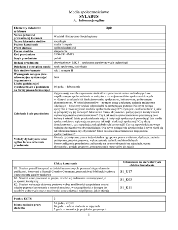 Nazwa Wydziału Wydział Zarządzania i Komunikacji Społecznej