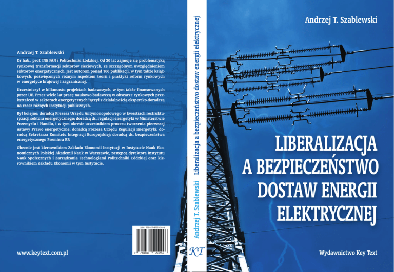 Dr hab., prof. INE PAN i Politechniki Łódzkiej. Od 30 lat zajmuje się problematyką rynkowej transformacji sektorów sieciowych, ze szczególnym uwzględnieniem sektorów energetycznych. Jest autorem ponad 100 publikacji, w tym także książkowych, poświęconych różnym aspektom teorii i praktyki reform rynkowych w energetyce krajowej i zagranicznej. Uczestniczył w kilkunastu projektach badawczych, w tym także finansowanych przez UE. Przez wiele lat pracę naukowo-badawczą w obszarze rynkowych przekształceń w sektorach energetycznych łączył z działalnością ekspercko-doradczą na rzecz różnych instytucji publicznych. Był kolejno: doradcą Prezesa Urzędu Antymonopolowego w kwestiach restrukturyzacji sektora energetycznego; doradcą ds. regulacji energetyki w Ministerstwie Przemysłu i Handlu, i w tym okresie uczestnikiem procesu tworzenia pierwszej ustawy Prawo energetyczne; doradcą Prezesa Urzędu Regulacji Energetyki; doradcą Sekretarza Komitetu Integracji Europejskiej; doradcą ds. bezpieczeństwa energetycznego Premiera RP. Obecnie jest kierownikiem Zakładu Ekonomii Instytucji w Instytucie Nauk Ekonomicznych Polskiej Akademii Nauk w Warszawie, zastępcą dyrektora Instytutu Nauk Społecznych i Zarządzania Technologiami Politechniki Łódzkiej oraz kierownikiem Zakładu Ekonomii w tym Instytucie. www.keytext.com.pl Andrzej T. Szablewski Liberalizacja a bezpieczeństwo dostaw energii elektrycznej Andrzej T. Szablewski Andrzej T. Szablewski LIBERALIZACJA A BEZPIECZEŃSTWO DOSTAW ENERGII ELEKTRYCZNEJ Wydawnictwo Key Text Spis treści Wstęp . . . . . . . . . . . . . . . . . . . . . . . . . . . . . . . . . . . . . . . . . . . . . . . . . . . . . . . . . . . . . . . . . . . . 7 Kontekst problemu oraz pytanie badawcze . . . . . . . . . . . . . . . . . . . . . . . . . . . . . . . . . . . 7 Struktura i zawartość pracy . . . . . . . . . . . . . . . . . . . . . . . . . . . . . . . . . . . . . . . . . . . . . . . 12 Rozdział 1 Pojęcie, zakładane skutki i przebieg pierwszej fazy liberalizacji sektorów elektroenergetycznych . . . . . . . . . . . . . . . . . . . . . . . . . . . . . . . . . . . . . . . . . . . . . . . . . . . . . . . . . 1.1. Przesłanki liberalizacji . . . . . . . . . . . . . . . . . . . . . . . . . . . . . . . . . . . . . . . . . . . . . . . . . 1.3. Zawartość pakietu liberalizacyjnego . . . . . . . . . . . . . . . . . . . . . . . . . . . . . . . . . . . . . 1.4. Implikacje liberalizacji dla polityki energetycznej i regulacyjnej . . . . . . . . . . . . . . . 1.5. Geneza liberalizacji i pierwsze inicjatywy Komisji Europejskiej . . . . . . . . . . . . . . . 1.6. Przebieg i efekty unijnego procesu legislacyjnego . . . . . . . . . . . . . . . . . . . . . . . . . . 1.7. Przebieg i modele liberalizacji sektora elektroenergetycznego w państwach UE 1.7.1. Model liberalizacji dobrowolnej . . . . . . . . . . . . . . . . . . . . . . . . . . . . . . . . . . . 1.7.2. Model liberalizacji inspirowanej . . . . . . . . . . . . . . . . . . . . . . . . . . . . . . . . . . . . 1.7.3. Model liberalizacji wymuszonej . . . . . . . . . . . . . . . . . . . . . . . . . . . . . . . . . . . . 1.8. Przyczyny słabnięcia poparcia dla wyjściowej koncepcji liberalizacji . . . . . . . . . . . 1.8.1. Kontrowersje wokół oceny pierwszych doświadczeń . . . . . . . . . . . . . . . . . . . 1.8.2. Ocena adekwatności koncepcji liberalizacji . . . . . . . . . . . . . . . . . . . . . . . . . . . 1.8.3. Badania nad istotą działania nowych mechanizmów . . . . . . . . . . . . . . . . . . . Załącznik: Pojęcie bezpieczeństwa dostaw energii elektrycznej . . . . . . . . . . . . . . . . . . . 16 17 26 35 42 44 49 51 53 56 58 60 64 69 71 Rozdział 2 Założenia a praktyka funkcjonowania konkurencyjnych rynków energii elektrycznej − aspekt bezpieczeństwa dostaw . . . . . . . . . . . . . . . . . . . . . . . . . . . . . . . . . . . . . . . . . . 75 2.1. Uwagi wstępne . . . . . . . . . . . . . . . . . . . . . . . . . . . . . . . . . . . . . . . . . . . . . . . . . . . . . . . 75 2.2. Ocena dotychczasowych doświadczeń . . . . . . . . . . . . . . . . . . . . . . . . . . . . . . . . . . . . 77 2.2.1. Przypadek rynku skandynawskiego . . . . . . . . . . . . . . . . . . . . . . . . . . . . . . . . . 77 2.2.2. Przypadek rynku brytyjskiego . . . . . . . . . . . . . . . . . . . . . . . . . . . . . . . . . . . . . 81 2.2.3. Przypadek rynków amerykańskich . . . . . . . . . . . . . . . . . . . . . . . . . . . . . . . . . . 85 2.2.4. Przypadek rynku australijskiego . . . . . . . . . . . . . . . . . . . . . . . . . . . . . . . . . . . 91 2.3. Istota problemów z inwestycjami . . . . . . . . . . . . . . . . . . . . . . . . . . . . . . . . . . . . . . . . 94 2.3.1. Argument ułomności rynku . . . . . . . . . . . . . . . . . . . . . . . . . . . . . . . . . . . . . . . 95 2.3.2. Bariera społeczno-polityczna . . . . . . . . . . . . . . . . . . . . . . . . . . . . . . . . . . . . . . 97 2.3.3. Ryzyko i jego źródła . . . . . . . . . . . . . . . . . . . . . . . . . . . . . . . . . . . . . . . . . . . . . . 102 2.3.4. Bierność strony popytowej . . . . . . . . . . . . . . . . . . . . . . . . . . . . . . . . . . . . . . . . 113 2.4. Rynek a bodźce inwestycyjne. Główne stanowiska . . . . . . . . . . . . . . . . . . . . . . . . . . 119 Rozdział 3 Geneza i rozwój regulacji bodźcowej oraz jej implikacje inwestycyjne . . . . . . . . . . . . 3.1. Uwagi wstępne . . . . . . . . . . . . . . . . . . . . . . . . . . . . . . . . . . . . . . . . . . . . . . . . . . . . . . . 3.2. Zarys teoretycznych podstaw regulacji bodźcowej . . . . . . . . . . . . . . . . . . . . . . . . . . 3.3. Dwie strategie reform w zakresie bodźcowej regulacji cen . . . . . . . . . . . . . . . . . . 3.3.1. Strategia proefektywnościowej modyfikacji regulacji stopy zwrotu . . . . . . . 3.3.2. Stratega odwrotu od regulacji stopy zwrotu – wybór pułapowej regulacji cen (RPI-X) . . . . . . . . . . . . . . . . . . . . . . . . . . 