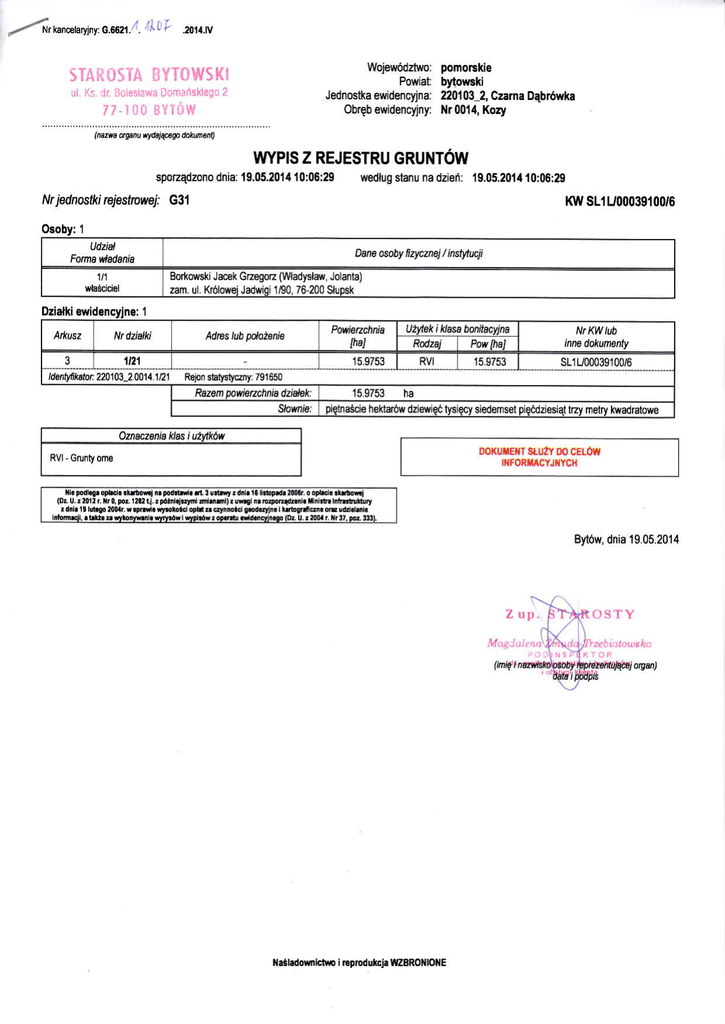 Jednos&a ewid€ncyjna: 220103 2, czama Dąbróu,lG