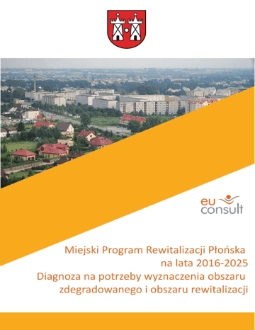 Niniejszy dokument sporządzono zgodnie z zasadą partnerstwa i partycypacji w ścisłym porozumieniu i przy współpracy z samorządem gminnym i przedstawicielami społeczności lokalnej. Zamawiający Gmina Miasto Płońsk Płocka 39 09-100 Płońsk Wykonawca EU-Consult sp. z o.o. Ul. Wały Piastowskie 1 80-855 Gdańsk Gdańsk, 2016 Miejski Program Rewitalizacji Płońska na lata 2016-2025 Diagnoza z zakresu wyznaczenia obszaru zdegradowanego i obszaru rewitalizacji Strona |2 Spis treści 1. Diagnoza społeczno-gospodarcza miasta...................................................................................... 4 1.1. Charakterystyka zagospodarowania przestrzennego ..................................................... 4 1.2. Charakterystyka gospodarcza ................................................................................................ 19 1.3. Charakterystyka społeczna ..................................................................................................... 24 2. Analiza SWOT ........................................................................................................................................ 47 3. Powiązanie z dokumentami strategicznymi na poziomie gminy, powiatu, województwa i kraju ................................................................................................................................... 50 4. Diagnoza czynników i zjawisk kryzysowych oraz skali i charakteru potrzeb rewitalizacyjnych na podstawie badań własnych ........................................................................... 54 5. 6. 4.1. Problemy społeczne ................................................................................................................... 55 4.2. Problemy gospodarcze ............................................................................................................. 61 4.3. Problemy środowiskowe ......................................................................................................... 61 4.4. Problemy przestrzenno-funkcjonalne ................................................................................ 63 Obszary zdegradowane i obszary rewitalizacji........................................................................ 65 5.1. Obszary zdegradowane ............................................................................................................ 65 5.2. Obszary rewitalizacji ................................................................................................................. 76 Spis tabel i rysunków ......................................................................................................................... 79 Miejski Program Rewitalizacji Płońska na lata 2016-2025 Diagnoza z zakresu wyznaczenia obszaru zdegradowanego i obszaru rewitalizacji Strona |3 1. Diagnoza społeczno-gospodarcza miasta 1.1.Charakterystyka zagospodarowania przestrzennego Położenie i struktura funkcjonalno-przestrzenna miasta Płońsk leży w północno – zachodniej części województwa mazowieckiego, ok. 65 km od stolicy kraju- Warszawy. Jest to miasto, które jest główną siedzibą powiatu płońskiego. Jego łączna powierzchnia wynosi 1 160 ha. Rysunek 1 Lokalizacja Miasta Płońsk Źródło: http://mapy.geoportal.gov.pl/imap/?gpmap=gp0&actions=acShowServices_KATASTER Na terenie miasta funkcjonuje 13 samorządowych jednostek pomocniczych Miasta, tzw. osiedli, których organem uchwałodawczym i kontrolnym są Ogólne Zebrania Mieszkańców. Organem wykonawczym są Zarządy Osiedli, wybierane przez ogólne zebranie mieszkańców. Stan dziedzictwa kulturowego i zabytków Płońsk to miasto, które otrzymał prawa miejskie już w 1400 roku. Jednak pierwsze ślady osadnictwa na tym terenie wskazują na okres VI-VII wieku. Miejski Program Rewitalizacji Płońska na lata 2016-2025 Diagnoza z zakresu wyznaczenia obszaru zdegradowanego i obszaru rewitalizacji Strona |4 Przede wszystkim było ono istotnym ośrodkiem pod kątem ekonomicznym (szczególnie w XVI wieku) oraz komunikacyjnym (najstarszy trakt prowadził z Warszawy do Gdańska). Ze względu na położenie, Płońsk był miastem wielu klęsk żywiołowych i miejscem licznych wojen. W XV wieku w Płońsku zaczęli osiedlać się pierwsi Żydzi. Ich społeczność bardzo się rozwinęła, już około roku 1808 stanowili oni 70% mieszkańców miasta. Przez kolejne lata liczba ludności polskiej i żydowskiej wyrównywała się – tuż przed wybuchem II wojny światowej stanowili oni połowę ludności Płońska. W trakcie II wojnie światowej dokonano eksterminacji tej grupy, która do dnia dzisiejszego nie zdołała odrodzić swoich struktur na ziemi płońskiej1. W Płońsku zachowało się Grodzisko z XI-XII wieku, który stanowi element z przedlokacyjnego układu przestrzennego oraz lokacyjną siatką ulic strukturalną owalnicą, wpisaną w ten układ później. Na zabudowę historyczną miasta składają się obiekty z XIX i XX wieku- tworzą one układ urbanistyczny składający się z m.in.: gabarytów, pokrycia dachów, itp. Do istotnych elementów architektonicznych zalicza się również: zespoły kościoła i klasztoru Karmelitów oraz cmentarz z zabytkowymi nagrobkami2. W skład sfery rezerwatu archeologicznego wchodzi wczesnośredniowieczne grodzisko. Natomiast ochroną konserwatorską objęte są tereny powiązane z: reliktami przed lokacyjnej osady targowej i grodziskiem, zabudową sakralną i mieszkaniową oraz historyczne linie zabudowy, istniejąca szerokość i przebieg ulic wylotowych z rynku. Krajobraz miasta tworzą liczne obiekty o zróżnicowanym charakterze, w tym przede wszystkim sakralnym czy mieszkaniowym, wpisane do rejestru zabytków oraz do gminnej ewidencji zabytków, które przedstawia poniższe zestawienie: 1http://plonsk.pl/550-studium-uwarunkowan-i-kierunkow-zagospodarowania-przestrzennego-miasta- plonsk.html, [data dostępu: 07.06.2016 r]. 2 http://plonsk.pl/550-studium-uwarunkowan-i-k