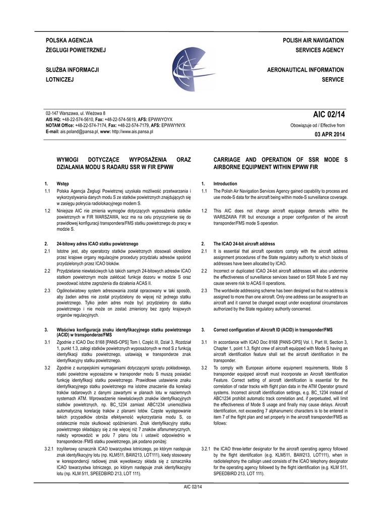 AIC 02/14 - ais.pansa.pl - Polska Agencja Żeglugi Powietrznej