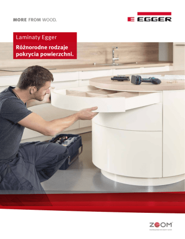 Laminaty Egger Różnorodne rodzaje pokrycia powierzchni. Wzornictwo i funkcjonalność - Autentyczna powierzchnia ST10 w połączeniu z laminatami EGGER stanowi idealne rozwiązanie dla miejsc o dużym natężeniu ruchu. Przedstawione dekory i laminaty: H3702 ST10 Orzech Pacific tabak, U323 ST15 Czerwień ognista, F396 ST10 Basaltino szare (Laminat MED). Laminaty EGGER 3 LAMINATY EGGER – BOGACTWO RÓŻNORODNOŚCI Połączenie współczesnego wzornictwa z wygodą użytkowania Łatwe w utrzymaniu materiały pozwalające stworzyć nastrój Ponadczasowe wzornictwo i trwała powierzchnia SPIS TREŚCI DOSTĘPNOŚĆ 4 Wprowadzenie do świata laminatów EGGER i ich różnych właściwości Elastyczność i wzornictwo we wszystkich wymiarach Wydajne wykorzystanie Zastosowanie laminatów nawet dla najmniejszych elementów Dlaczego laminaty są tak istotne w przypadku drzwi Kolekcja Zoom obejmuje szeroki wybór 11 Laminaty odpowiednie do określonych zastosowań EGGER Laminat EGGER Laminat Flex EGGER Laminaty o rdzeniach barwionych w masie EGGER Laminat XL EGGER Laminat aluminiowy EGGER Laminat Flammex EGGER Laminat Micro EGGER Laminat do lakierowania nowoczesnych jak i klasycznych wzorów, dostępnych nawet w minimalnych ilościach. Szczegółowe informacje na temat dostępności poniższych produktów i dekorów znajdują się w programie dostaw Zoom oraz na stronie www.egger.com/zoom 18 Produkty wykonane z laminatów EGGER Blaty robocze EGGER Płyta pokryta laminatem 20 Płyty kompaktowe EGGER 22 Zaglądamy do środka 25 Przyjazne środowisku produkty EGGER 26 O obróbce: Odpowiemy na każdy pytanie W jaki sposób laminaty EGGER są przygotowywane do transportu? W jaki sposób należy prawidłowo przechowywać laminaty i obchodzić się z nimi? O czym należy pamiętać podczas obróbki laminatów? Jak ciąć laminaty? Czy pozbywanie się odpadów z laminatów jest kłopotliwe? O czym należy pamiętać podczas przyklejenia laminatów? Wskazówki dotyczące obróbki oklejonych płyt Laminaty w codziennym użytku 34 Wykaz haseł 36Usługi www.egger.com/laminaty 4 Laminaty EGGER WPROWADZENIE DO ŚWIATA LAMINATÓW EGGER I ICH RÓŻNYCH WŁAŚCIWOŚCI Laminaty to ozdobne materiały laminacyjne, które można naklejać na różne podłoża. Podstawowe zalety: Laminaty są uniwersalne oraz łatwe w obróbce. Ich wielką zaletą jest wysoka odporność powierzchni. Laminaty EGGER oferują wiele korzyści: Odporność na uderzenia Odporność na zadrapania Zdolność materiału do wytrzymania gwałtownego, Zdolność materiału do unikania zadrapań określana jest krótkotrwałego obciążenia lub uderzenia określana jako odporność na zadrapania. jest jako odporność na uderzenia. Odporność na ścieranie Odporność na wpływ pary wodnej Ścieranie polega na mechanicznym usuwaniu zewnętrznej Jest to zdolność materiału do zapobiegania przedostawaniu warstwy powierzchni. Odporność na ścieranie oznacza, się pary wodnej do wnętrza. że materiał wytrzyma tarcie bez uszkodzeń powierzchni. Odporność cieplna Łatwość utrzymania w czystości Zdolność materiału do wytrzymywania w pewnym zakresie Powierzchnia łatwa do utrzymania w czystości musi być wpływu temperatury określana jest jako odporność cieplna. powierzchnią zamkniętą, łatwą do czyszczenia i jednocześnie odporną na działanie środków czyszczących. Dzięki możliwości zachowania wysokiego standardu higieny i łatwości utrzymania w czystości, stosowanie laminatów jest wyjątkowo pożądane w restauracjach i szpitalach. Właściwości laminatów Szczegóły Laminaty MED Uniwersalny, standardowy laminat kolekcji Zoom. Laminat Flex Pozwala uzyskać kształty o bardzo małym promieniu, można go poddawać postformingowi. Laminaty z rdzeniem barwionym w masie Laminaty z rdzeniem barwionym w masie (na całym obrzeżu laminowanym) do kompozycji dekoracyjnych. Laminaty XL Laminaty w dużym formacie ze strukturą synchroniczną „Feelwood”. Prawdziwy laminat aluminiowy Powłoka z prawdziwego aluminium (chłodny, metaliczny wygląd i efekt stali nierdzewnej) do kompozycji ozdobnych. Laminat Flammex W razie pożaru: trudnopalny, generujący niewielkie ilości dymu, nie topi się i nie tworzy płonących kropli. Spełnia wymogi przetargów dla budynków publicznych. Laminat Micro Cienki laminat umożliwiający uzyskiwanie kształtów o bardzo małym promieniu w postformingu, doskonale nadaje się do produkcji drzwi (dopasowanie pod względem dekoru wszystkich elementów drzwi). Laminat do lakierowania Laminaty przeznaczone do lakierowania. Dostępność Informacje na temat materiałów szybko dostępnych znaleźć można w programie dostaw Zoom. Na zapytanie! Szczegółowych informacji udzielają dystrybutorzy produktów EGGER. Wybrane podłoże dobierane jest odpowiednio do określonego zastosowania. Dzięki temu nawet w obrębie jednego elementu wzorniczego możliwe jest zastosowanie wielu podłoży oklejonych laminatami EGGER bez ograniczania możliwości wzorniczych. Laminaty EGGER 5 ELASTYCZNOŚĆ I WZORNICTWO WE WSZYSTKICH WYMIARACH Ogromną zaletą laminatów jest ich uniwersalność. Mogą być produkowane w dużych rozmiarach i naprasowane na różne podłoża. W łatwy sposób pozwala to uzyskać powierzchnie zaoblone i pozbawione łączeń. Niemal wszystkie laminaty można poddawać postformingowi. Indywidualne docinanie na wymiar pozwala ograniczyć ilość odpadów! Laminaty są idealnym materiałem do projektów o wysokich wymaganiach wzorniczych. Pozwalają na łatwe tworzenie mebli o indywidualnie zaprojektowanych kształtach z zastosowaniem najnowszych kombinacji kolorystycznych. Firma EGGER jest doskonałym partnerem do Państwa projektów. Indywidualność wyrażana poprzez atrakcyjne dekory: F900 Nasze produkty, takie jak melaminowane płyty wiórowe, laminaty i obrzeża ABS, są dopasowane pod względem dekoru i struktury. WYDAJNE WYKORZYSTANIE Dzięki ciągłemu procesowi produkcji (CPL), możl