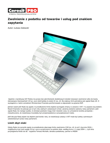 Zwolnienie z podatku od towarów i usług pod znakiem zapytania Autor: Łukasz Zalewski Zgodnie z dyrektywą VAT Polska ma prawo bez jakichkolwiek dodatkowych działań stosować zwolnienie tylko do kwoty stanowiącej równowartość 10 tys. euro (dziś byłoby to około 41 tys. zł). Na większy limit potrzebna jest zgoda Rady UE. O wystąpieniu z takim wnioskiem Ministerstwo Finansów poinformowało w odpowiedzi na pytania DGP. Jednak nawet jeśli Rada się zgodzi, to przedłużenie limitu będzie wymagało zmiany w ustawie o VAT. I tu pojawia się problem. Resort finansów nie planuje już w tym roku żadnych ustawowych zmian. Jesienią zostanie wybrany nowy parlament. Jeśli zgoda Rady nie nastąpi szybko, to dzisiejsi posłowie mogą mieć niewiele czasu na uchwalenie korekty przepisów – niewykluczone, że nowelizacja musiałaby być przeprowadzona w przyspieszonym trybie. Jeśli decyzja Rady pojawi się dopiero pod koniec roku, to nowelizacja ustawy o VAT może być jedną z pierwszych zatwierdzonych przez nowy parlament. Limit zbyt niski Gdyby Rada nie wyraziła zgody na przedłużenie obecnego limitu zwolnienia (150 tys. zł), to od 1 stycznia 2016 r. moglibyśmy brać pod uwagę 10 tys. euro w przeliczeniu na polskie złote, według kursu z 1 maja 2004 r., czyli dnia przystąpienia Polski do UE – wyjaśnia Tomasz Michalik, doradca podatkowy, partner w MDDP. Spodziewa się jednak decyzji korzystnej dla podatników. Kłopot polega tylko na tym, że możemy na nią czekać co najmniej kilka miesięcy. Długotrwała procedura W praktyce Rada ma na wydanie decyzji co najmniej pięć miesięcy – tłumaczy Roman Namysłowski, doradca podatkowy i partner w Crido Taxand. Wyjaśnia, że państwo może wprowadzić odstępstwa od limitu zwolnienia (każdy kraj wynegocjował inny limit, dla Polski jest to 10 tys. euro) – ale tylko wtedy, gdy mają one na celu upraszczanie poboru VAT lub zapobieganie niektórym formom uchylania się lub unikania opodatkowania. Kolejnym warunkiem jest uzyskanie zgody Rady UE. Poprzednią decyzję Rada wydała w grudniu 2012 r., ale wygasa ona z końcem 2015 r. Roman Namysłowski wyjaśnia, że tryb jest następujący: Komisja Europejska ma dwa miesiące na przeanalizowanie wniosku o zgodę na stosowanie wyższego limitu zwolnienia i na zażądanie dodatkowych materiałów. Następnie informuje o wniosku pozostałe państwa członkowskie. W ciągu trzech miesięcy od ich powiadomienia przekazuje Radzie swoją rekomendację. Jeżeli będzie pozytywna, a trudno w tej sprawie spodziewać się innej, to Rada powinna wydać decyzję upoważniającą Polskę do stosowania wyższego limitu zwolnienia podmiotowego – przewiduje ekspert. Można więcej Polska w traktacie akcesyjnym uzgodniła limit w wysokości 10 tys. euro, ale w kolejnych latach występowała o zgodę na jego podwyższenie. Obecnie Ministerstwo mogło wnioskować o wyższą kwotę zwolnienia podmiotowego niż 150 tys. zł. Eksperci są jednak podzieleni, czy resort powinien się tego domagać, czy też obecny poziom zwolnienia jest wystarczający. Za jego podwyższeniem opowiada się Roman Namysłowski. Przypomina, że w 2004 r. Komisja Europejska proponowała zmiany w dyrektywie VAT i wprowadzenie maksymalnego pułapu dla wszystkich krajów na poziomie 100 tys. euro. Polski limit w wysokości 150 tys. zł mieści się w dolnym jego przedziale – zauważa ekspert. Również zdaniem Łukasza Blaka, doradcy podatkowego z Certus LTA, należałoby zwiększyć limit. Obecny nie obejmuje bowiem wielu małych firm, których obroty nieznacznie przekraczają obecny jego poziom. Za zwiększeniem przemawia też to, że niektóre kraje wynegocjowały wyższy limit zwolnienia (np. Węgry, Czechy, Słowacja) – przekonuje Blak. Powodów do takiej zmiany nie widzi natomiast Tomasz Michalik. – W skali Polski jest on dość wysoki. Sądzę, że się sprawdził i w związku z tym na pewno nie warto go zmieniać – uważa Michalik. Nie tylko limit Zdaniem Łukasza Blaka ministerstwo powinno również rozważyć zmianę przepisów w zakresie wyboru zwolnienia w pierwszym roku działalności. Obecnie organy podatkowe twierdzą, że każdy podatnik rozpoczynający działalność gospodarczą jest zwolniony z VAT (tak wygląda konstrukcja deklaracji VAT-R). Często nowi przedsiębiorcy są tym zaskoczeni. Nie znając ustawy o VAT, rejestrują się do celów VAT z opóźnieniem. Jeśli dokonali sprzedaży przed momentem rejestracji, to może to im uniemożliwić odliczenie VAT od wydatków inwestycyjnych poniesionych przed rejestracją – zwraca uwagę ekspert. Według niego dobrze byłoby, gdyby przedsiębiorca przy rejestracji działalności gospodarczej musiał wprost wskazać, czy wybiera opodatkowanie, czy zwolnienie z VAT. Wystarczy dodać możliwość wyboru we wniosku rejestracyjnym działalności gospodarczej (CEiDG-1) – wskazuje. Korzystny dla obu stron Zwolnienie podmiotowe nie musi być dla podatnika opłacalne, bo pozbawia go prawa do odliczenia podatku naliczonego. Z drugiej strony jednak – jak zauważa Łukasz Blak – redukuje obowiązki podatników. Nie muszą oni składać deklaracji i prowadzić rejestrów VAT. Mogą skupić się na prowadzeniu działalności gospodarczej – argumentuje. Z kolei dla budżetu państwa korzystne jest to, że podatnik zwolniony z VAT nie ma prawa do odliczenia oraz zmniejszają się koszty poboru daniny – dodaje Roman Namysłowski. © 2013 Henkel Polska sp. z o.o.