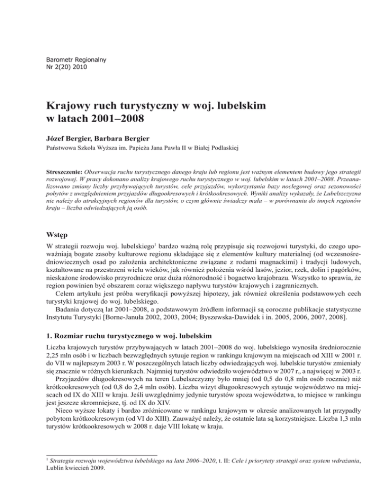 (2010): Krajowy ruch turystyczny w woj. lubelskim w latach 2001