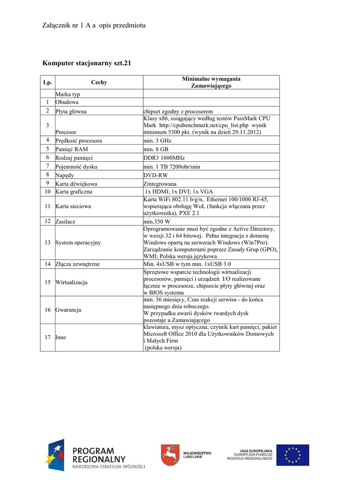 Załącznik nr 1 A a opis przedmiotu Komputer stacjonarny szt.21