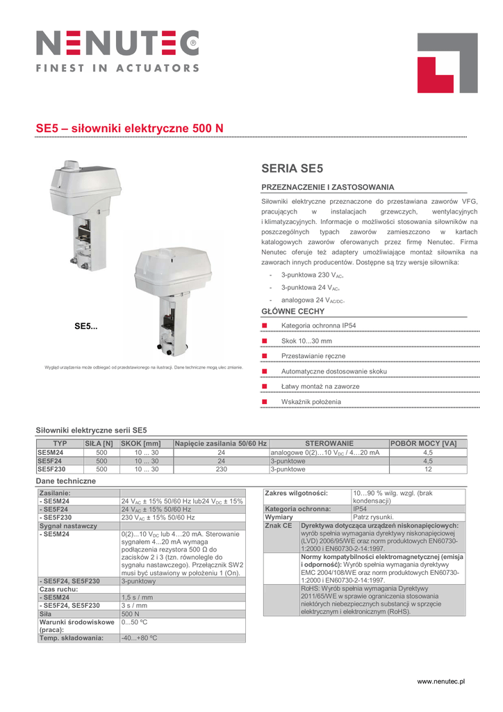 SE5 – siłowniki elektryczne 500 N SERIA SE5