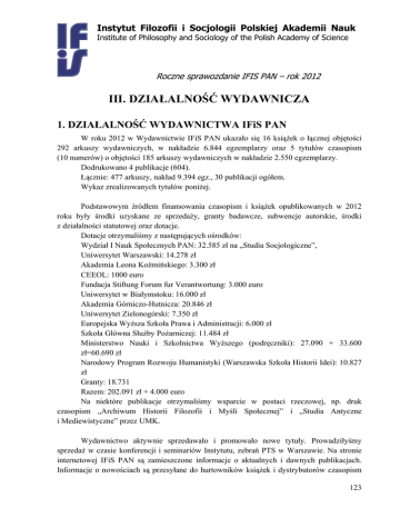 iii. działalność wydawnicza - Instytut Filozofii i Socjologii Polskiej