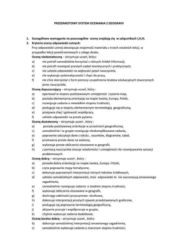 PRZEDMIOTOWY SYSTEM OCENIANIA Z GEOGRAFII 1