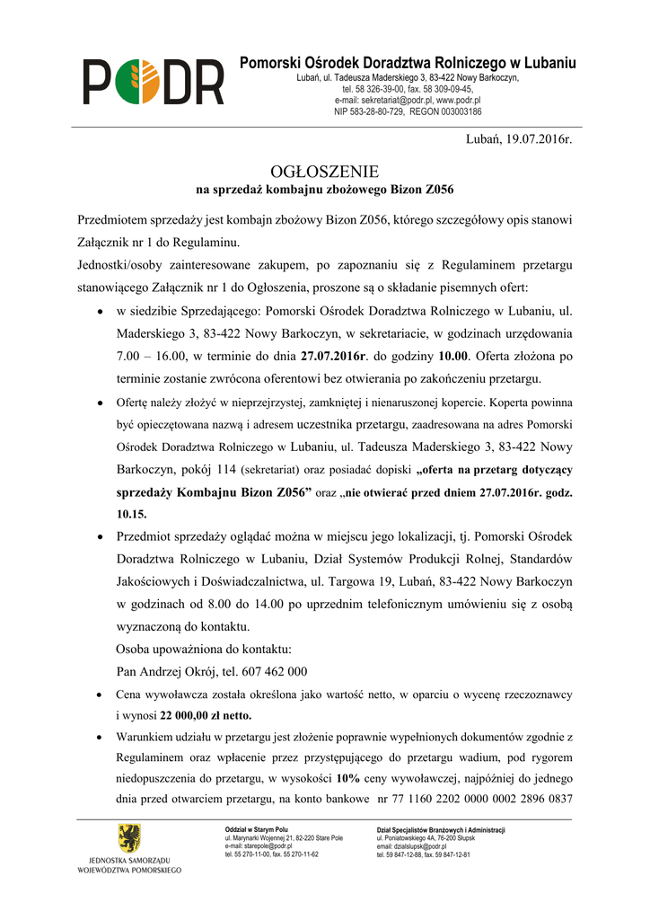 ogłoszenie - Pomorski Ośrodek Doradztwa Rolniczego