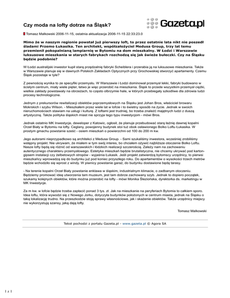 czy moda na lofty dotrze na śląsk? [Gazeta Wyborcza]