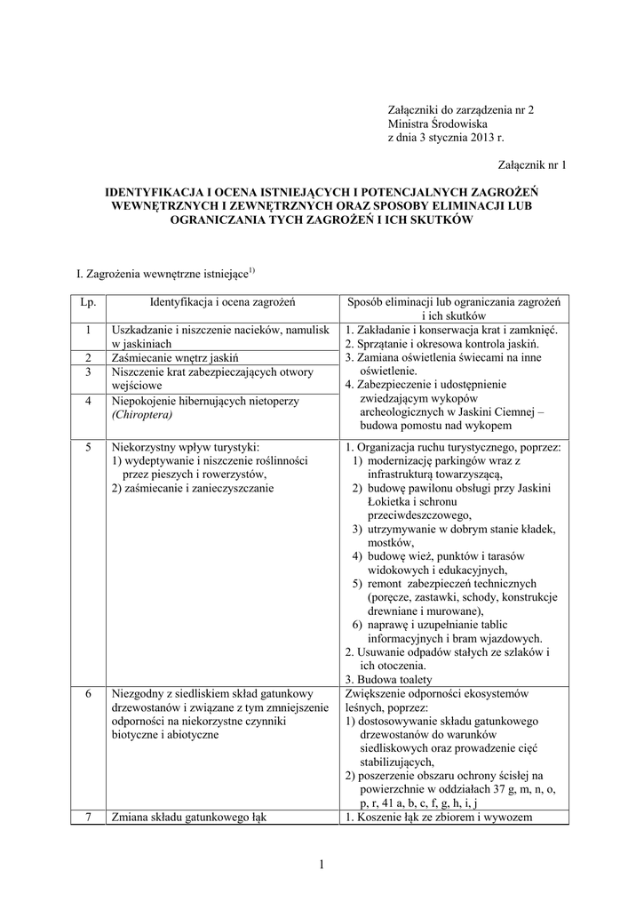 Załącznik nr 1 - Dziennik Urzędowy Ministra Środowiska
