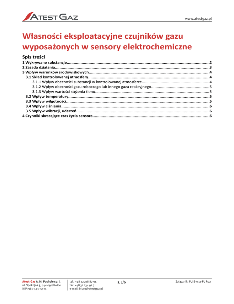 Własności eksploatacyjne czujników gazu - Atest-Gaz