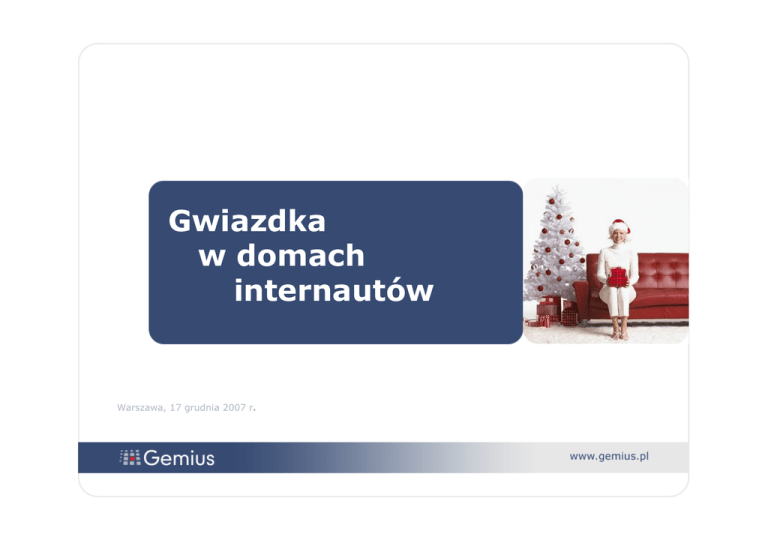 Gwiazdka w domach internautów Warszawa, 17 grudnia 2007 r. O badaniu • Celem badania było przedstawienie zwyczajów bożonarodzeniowych obchodzonych w domach internautów. Badani internauci odpowiedzieli na pytanie, z czym przede wszystkim kojarzą im się święta Bożego Narodzenia. Określili, kiedy kupują prezenty pod choinkę oraz oszacowali wydatki związane z tymi zakupami. Raport uzupełniają dane dotyczące popularności internetu, jako miejsca świątecznych zakupów oraz źródła pomysłów na gwiazdkowe upominki. • Badanie zrealizowano za pomocą ankiet internetowych emitowanych na witrynach internetowych korzystających z bezpłatnego audytu site-centric stat.pl/PBI. Ankiety emitowane były losowo w okresie od 10 do 14 grudnia 2007 roku. Analizą objęto 1983 internautów w wieku co najmniej 15 lat, którzy wypełnili ankietę do końca. Aby dane były reprezentatywne dla ogółu internautów w wieku 15 i więcej lat, odpowiedzi badanych analizowano z wykorzystaniem wagi analitycznej, skonstruowanej na podstawie danych o płci i wieku internautów oraz o ich częstotliwości korzystania z internetu pochodzących z badania Omnibus PBS (VIII-IX 2007). 2 1. Zwyczaje świąteczne Zwyczaje świąteczne • Szczególny charakter świąt Bożego Narodzenia tworzą związane z nimi od wieków obrzędy, obyczaje i wierzenia. Spośród bogatej tradycji bożonarodzeniowych zwyczajów, internauci najbardziej cenią składanie sobie życzeń i dzielenie się opłatkiem (91 proc.). 82 proc. badanych internatów przyznaje, że w czasie świąt będzie obdarowywać się prezentami. Ponad połowa respondentów (54 proc.) planuje śpiewać kolędy, a jedynie co trzeci zamierza czytać w tym czasie Pismo Święte. • Według tradycji do wieczerzy wigilijnej należy zasiąść wraz z pojawieniem się pierwszej gwiazdki na niebie. Do kultywowania takiego obyczaju przyznaje się jednak tylko połowa internautów biorących udział w badaniu (47 proc.). O wiele bardziej powszechnym zwyczajem jest zostawianie pustego nakrycia dla niespodziewanego gościa - znajdzie się ono na wigilijnych stołach u 74 proc. badanych internautów. • Kobiety częściej niż mężczyźni deklarują obecność w ich domach bożonarodzeniowych zwyczajów świątecznych. 4 Jakie zwyczaje świąteczne będą obecne w Twoim domu podczas tych świąt Bożego Narodzenia? składanie sobie życzeń 91% dzielenie się opłatkiem 91% dawanie prezentów 82% nakrycie dla niespodziewanego gościa 74% 73% tradycje dotyczące potraw wigilijnych (np. karp, 12 dań itp.) chowanie sianka pod obrusem, talerzem itp. 62% wspólne ubieranie choinki 56% śpiewanie kolęd 54% wyczekiwanie na pierwszą gwiazdkę 47% wspólne wyjście na pasterkę 36% czytanie Pisma Świętego 32% inne zwyczaje żadne z wyżej wymienionych 1% nie obchodzę świąt Bożego Narodzenia 0% N=1983 – wszyscy badani 5 11% 4% 10% 20% 30% 40% 50% 60% 70% 80% 90% 100% Źródło: gemiusAdHoc, grudzień 2007 Jakie zwyczaje świąteczne będą obecne w Twoim domu podczas tych świąt Bożego Narodzenia? – podział według płci 0% 10% 20% 30% 40% 50% 60% 70% 90% 100% 94% składanie sobie życzeń 88% dzielenie się opłatkiem 93% 89% 84% dawanie prezentów 79% 78% nakrycie dla niespodziewanego gościa 70% tradycje dotyczące potraw wigilijnych (np. karp, 12 dań itp.) 71% 76% 66% chowanie sianka pod obrusem, talerzem itp. 58% 62% wspólne ubieranie choinki 50% 56% 53% śpiewanie kolęd 51% wyczekiwanie na pierwszą gwiazdkę 43% 35% 36% wspólne wyjście na pasterkę 12% 11% inne zwyczaje żadne z wyżej wymienionych nie obchodzę świąt Bożego Narodzenia 6 33% 31% czytanie Pisma Świętego N=1983 – wszyscy badani 80% 1% 1% kobieta (N=1277) mężczyzna (N=706) 3% 6% Źródło: gemiusAdHoc, grudzień 2007 2. Skojarzenia internautów na temat świąt Bożego Narodzenia Skojarzenia internautów na temat świąt Bożego Narodzenia • Święta Bożego Narodzenia kojarzą się internautom przede wszystkim z choinką (59 proc. wskazań) i czasem spędzonym z rodziną (53 proc.). Dla 35 proc. internautów Boże Narodzenie to przede wszystkim święto religijne (35 proc.), a dla 32 proc. – prezenty. • Co piątemu internaucie święta Bożego Narodzenia kojarzą się z jedzeniem i spędzaniem czasu przy stole (22 proc.), dzieciństwem (22 proc.) i Świętym Mikołajem (19 proc.). • 18 proc. internautów traktuje święta Bożego Narodzenia jako czas odpoczynku i relaksu (18 proc.). Jedynie dla 5 proc. badanych są one powodem do stresu i zmęczenia. • Święta to także czas przygotowań. Co dziesiątemu internaucie kojarzą się one przede wszystkim z zakupami (10 proc.), a co siódmemu (15 proc.) z gotowaniem i pieczeniem. 8 Skojarzenia internautów na temat świąt Bożego Narodzenia • Kobiety i mężczyźni nieco inaczej postrzegają święta Bożego Narodzenia. Mężczyźni zdecydowanie częściej niż kobiety traktują je przede wszystkim jako święto religijne – uważa tak 41 proc. mężczyzn i 28 proc. kobiet. Panom święta Bożego Narodzenia kojarzą się także częściej z jedzeniem i spędzaniem czasu przy stole (24 proc. wskazań mężczyźni i 19 proc. kobiety) oraz z odpoczynkiem i relaksem (odpowiednio 21 proc. i 15 proc.). • Natomiast kobiety częściej niż mężczyźni utożsamiają święta Bożego Narodzenia ze Świętym Mikołajem (22 proc. wskazań – kobiety i 16 proc. – mężczyźni) oraz gotowaniem i pieczeniem (odpowiednio 20 proc. i 11 proc.). • Internautom w wieku 15-18 lat święta Bożego Narodzenia kojarzą się częściej z prezentami i czasem odpoczynku i relaksu niż badanym z pozostałych grup wiekowych. Natomiast internauci w wieku 35+ częściej postrzegają je jako święto religijne, a także wspomnienie dzieciństwa. 9 Z czym przede wszystkim kojarzą Ci się święta Bożego Narodzenia? Zaznacz na liście nie więcej niż trzy pasujące określenia. 59% choinka 53% czas spędzony z rodziną 35% świ