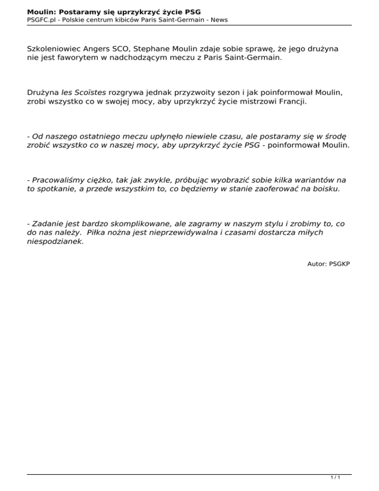 Moulin: Postaramy się uprzykrzyć życie PSG