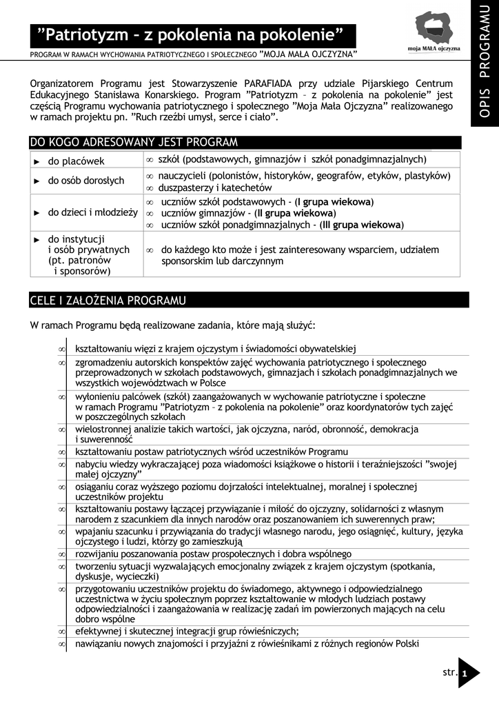 Opis Programu Patriotyzm - z pokolenia na pokolenie