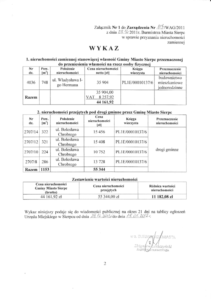 nieruchomości zamiennej stanowiącej własnośćGminy Miasto Sierpc przeznaczonej