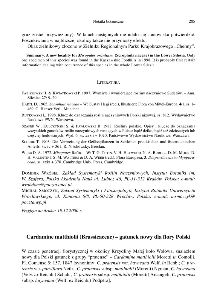 Cardamine matthiolii (Brassicaceae) – gatunek nowy dla flory Polski