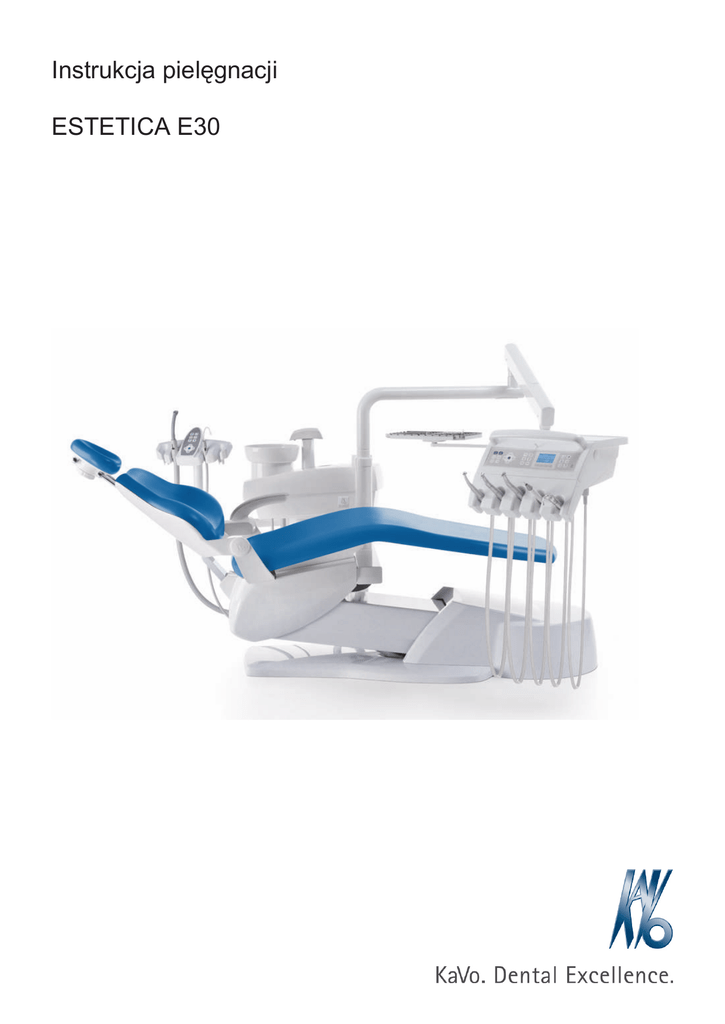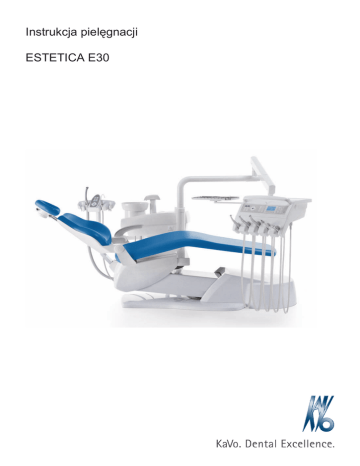 Instrukcja pielęgnacji ESTETICA E30 Producent: Kaltenbach & Voigt GmbH Bismarckring 39 D-88400 Biberach www.kavo.com Dystrybucja: KaVo Dental GmbH Bismarckring 39 D-88400 Biberach Tel. +49 (0) 7351 56-0 Faks +49 (0) 7351 56-1488 Instrukcja pielęgnacji ESTETICA E30 Spis treści Spis treści 1 Wskazówki dla użytkownika............................................................................................................................. 4 1.1 Instrukcje dla użytkownika........................................................................................................................ 4 1.1.1 Skróty.......................................................................................................................................... 4 1.1.2 Symbole....................................................................................................................................... 4 1.1.3 Grupa docelowa.......................................................................................................................... 4 2 Metody przygotowania wg DIN EN ISO 17664................................................................................................. 5 2.1 Wskazówki................................................................................................................................................ 5 2.2 Ogólna instrukcja przygotowania dla unitów stomatologicznych KaVo.................................................... 5 2.2.1 Przegląd przygotowania ESTETICA E30.................................................................................... 8 2.2.2 Przygotowanie KaVo Screen One/KaVo Screen HD.................................................................. 8 2.3 Przygotowanie powierzchni unitu stomatologicznego / obicie.................................................................. 9 2.4 Przygotowanie pulpitu lekarza................................................................................................................ 2.4.1 Przygotowanie uchwytu ręcznego i poduszki wsporczej/maty antypoślizgowej........................ 2.4.2 Przygotowanie tacy na instrumenty stołu TM............................................................................ 2.4.3 Przygotowanie pałąka stołu S................................................................................................... 2.4.4 Przygotowanie prostnicy trzyfunkcyjnej KaVo One................................................................... 2.4.5 Przygotowanie prostnicy trzyfunkcyjnej..................................................................................... 2.4.6 Przygotowanie przewodów instrumentów................................................................................. 2.4.7 Konserwacja filtra turbiny.......................................................................................................... 2.4.8 Przygotowanie KaVo ERGOcam One....................................................................................... 2.4.9 Przygotowanie KaVo PiezoLED................................................................................................ 10 10 10 11 12 15 18 18 19 20 2.5 Przygotowanie pulpitu asystenta............................................................................................................ 2.5.1 Przygotowanie tacy na instrumenty........................................................................................... 2.5.2 Przygotowanie złączki węża ssącego....................................................................................... 2.5.3 Przygotowanie wkładów sitkowych przewodów ssących.......................................................... 28 28 28 29 2.6 Przygotowanie części pacjenta............................................................................................................... 29 2.6.1 Przygotowanie kubka................................................................................................................ 29 2.6.2 Przygotowanie uchwytu i napełniacza kubka do płukania......................................................... 30 2.6.3 Przygotowanie spluwaczki......................................................................................................... 30 2.7 Ręczne funkcje zapewniające zachowanie higieny systemu doprowadzania wody............................... 31 2.7.1 Ręcznie intensywne odkażanie................................................................................................. 32 2.8 Przygotowanie systemu odsysania......................................................................................................... 33 2.8.1 Czyszczenie i dezynfekcja systemu odsysania z wężami ssącymi........................................... 33 3 Wymiana i kontrola środka dezynfekującego................................................................................................. 35 3.1 Dolewanie środka KaVo OXYGENAL 6 przy użyciu butli wodnej........................................................... 35 3.1.1 Napełnianie butelki płynu do intensywnego odkażania............................................................. 37 3.2 Sprawdzanie stężenia OXYGENAL 6..................................................................................................... 38 3 / 40 Instrukcja pielęgnacji ESTETICA E30 1 Wskazówki dla użytkownika | 1.1 Instrukcje dla użytkownika 1 Wskazówki dla użytkownika 1.1 Instrukcje dla użytkownika Wymagania Aby uniknąć błędów w obsłudze oraz zapobiec uszkodzeniom, przed pierwszym uruchomieniem produktu należy przeczytać niniejszą instrukcję obsługi. Wskazówki Przestrzegać instrukcji obsługi unitu stomatologicznegoESTETICA E30! 1.1.1 Skróty Krótki opis Objaśnienie GA Instrukcja obsługi PA Instrukcja konserwacji MA Instrukcja montażu TA Instrukcja dla techników STK Techniczna kontrola bezpieczeństwa IEC International Electrotechnical Commission RA Instrukcja naprawy EMC Kompatybilno