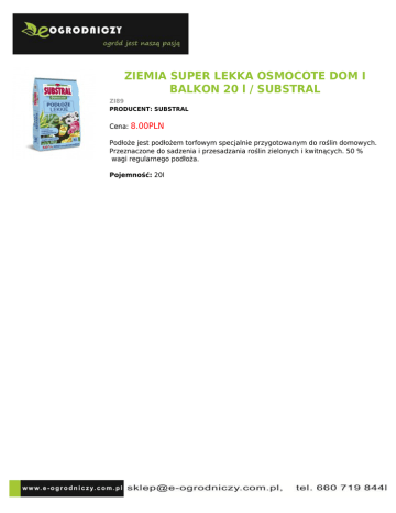 ZIEMIA SUPER LEKKA OSMOCOTE DOM I BALKON 20 l / SUBSTRAL ZI89 PRODUCENT: SUBSTRAL Cena: 8.00PLN Podłoże jest podłożem torfowym specjalnie przygotowanym do roślin domowych. Przeznaczone do sadzenia i przesadzania roślin zielonych i kwitnących. 50 % wagi regularnego podłoża. Pojemność: 20l