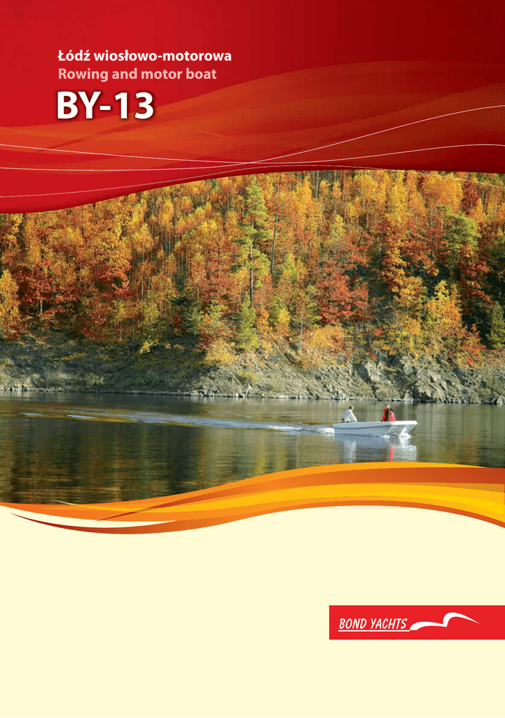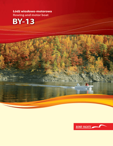 Łódź wiosłowo-motorowa Rowing and motor boat BY-13 Łódź wiosłowo-motorowa Rowing and motor boat BY -13 jest to łódka rekreacyjno-wędkarska z komorami wypornościowymi zapewniającymi całkowitą pływalność po wywróceniu, bądź zalaniu kokpitu wodą. Ze względu na swoją wielkość przewidzianym napędem jest silnik elektryczny, bądź spalinowy o mocy do 29,4 kW. Niewykluczonym jest napęd łódki wiosłami po zamontowaniu dulek. Łódka charakteryzuje się bardzo dużą statecznością poprzeczną – sześć osób ustawionych na jednej burcie nie powoduje nabierania wody przez falochrony. Przy załodze składającej się z trzech osób i mocy silnika 30 KM łódka z łatwością wchodzi w ślizg osiągając prędkość ok. 22 węzłów. W dużej bakiście rufowej można umieścić zbiornik paliwa, akumulator, pompę zęzową i dodatkowe wyposażenie jak: kotwica, liny itp. Pod pokładem w części dziobowej mieści się druga bakista o pojemności ok. 600 l do której można ładować wyposażenie przez dwie oddzielne klapy. W opcji przewidziana jest sterówka z owiewką, na której montowany jest ster ze sterociągiem mechanicznym i ewentualne wskaźniki pracy silnika i poziomu paliwa. Ze względu na wielofunkcyjność kadłuba, łódka nadaje się na wyprawy wędkarskie lub weekendowe rejsy turystyczne oraz do holowania narciarza wodnego. BY-13 is a recreational – fishing boat with displacement chambers to keep floating ability in case of overkeel or a cockpit flooding. For the sake of its size, the boat is equipped with an electric motor or a combustion engine of power up to 29.4 kW. It is also possible to propel the boat using oars after installing rowlocks. The boat is characterized by great transverse stability – six people standing on one side do not cause water gathering through boards. When there are three people on board and there is 30 KM engine installed, the boat is reaching a planing craft at the speed of 22 knots approximately. In the big stern locker there are: a fuel tank, a battery, a bilge pump as well as accessories such as an anchor, ropes etc. Under the deck, in the bow section, the second locker of 600 l capacity is placed. It is possible to load the equipment into the locker through two separate flaps. A wheelhouse with a wind shield (in which a rudder together with rudder chains is installed) as well as a tachometer and a fuel gauge are available on request. For the sake of a hull’s versatility, the boat is the excellent choice for fishing expeditions, cruises or water skiers towing. BY-13 Dane techniczne Technical data ŁÓDŹ WIOSŁOWO-MOTOROWA BY-13 Długość kadłuba 3,94 m Szerokość kadłuba 1,74 m Maksymalna moc silnika 29,4 kW Maksymalna liczba osób 6 Masa jednostki pustej 180 kg Maksymalna nośność 520 kg MOTOR-BOAT/ROWBOAT BY-13 Length of hull 3.94 m Beam of hull 1.74 m Max. engine power 29.4 kW Max. number of person 6 Light craft mass 180 kg Max. load 520 kg Max. moc silnika 29,4 kW Max. engine power 29,4 kW © JAREMEN PRESS 02/07 Bond Yachts Sp. z o. o ul. Świerczewskiego 11 58-573 Piechowice Poland tel: +48/75/753 43 72 fax: +48/75/753 43 73 informacje techniczne technical support: tel: +48/75/761 10 04 www.bondyachts.com.pl e-mail: [email protected]