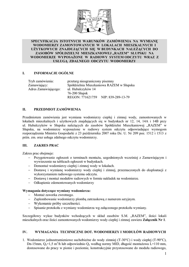 Załącznik nr 1 - wodomierze Ogrodowa 1 i 3
