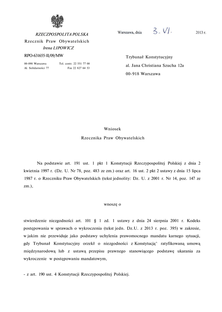 RZECZPOSPOLITA POLSKA Rzecznik Praw Obywatelskich Irena