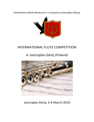 Państwowa Szkoła Muzyczna I i II stopnia w Jastrzębiu-Zdroju INTERNATIONAL FLUTE COMPETITION in Jastrzębie-Zdrój (Poland) Jastrzębie-Zdrój, 5-6 March 2010 THE INTERNATIONAL FLUTE COMPETITION in Jastrzębie-Zdrój (Poland) 5 – 6 March 2010 THE PRIZE WINNERS: CATEGORY I group I 1st place Magdalena Chudzikiewicz – Państwowa Szkoła Muzyczna I st. im. J. Elsnera w Brzegu (Poland) 2nd place Kinga Ziarnik – Państwowa Szkoła Muzyczna I st. im. G. Gorczyckiego w Rudzie Śląskiej (Poland) 3rd place ex aequo Justyna Grygierek – Państwowa Szkoła Muzyczna I i II st. w Jastrzębiu-Zdroju (Poland) 3rd place ex aequo Zuzanna Noga - Państwowa Szkoła Muzyczna I st. im. G. Gorczyckiego w Rudzie Śląskiej (Poland) distinction Wiktoria Kudanowska – Zespół Szkół Muzycznych im. S. Moniuszki w Łodzi (Poland) distinction Marlena Misiak – Państwowa Szkoła Muzyczna I i II st. w Zduńskiej Woli (Poland) CATEGORY I group II 1st place Natalia Egielman – Ogólnokształcąca Szkoła Muzyczna I i II st. im. F. Nowowiejskiego w Gdańsku (Poland) 2nd place Daria Branny – Państwowa Szkoła Muzyczna I i II st. im. I. Paderewskiego w Cieszynie (Poland) 3rd place Kamila Stawarz - Państwowa Szkoła Muzyczna I i II st. im. I. Paderewskiego w Cieszynie (Poland) distinction Paula Musiał – Państwowa Szkoła Muzyczna I st. w Wieluniu (Poland) distinction Zuzanna Ostromęcka – Państwowa Szkoła Muzyczna I st. im. J. Zarębskiego w Warszawie (Poland) CATEGORY I group III 1st place Lidia Barczuk - Państwowa Szkoła Muzyczna I i II st. im. I. Paderewskiego w Cieszynie (Poland) 2nd place Iwona Sarwińska - Ogólnokształcąca Szkoła Muzyczna I i II st. im. F. Nowowiejskiego w Gdańsku (Poland) 3rd place ex aequo Zofia Neugebauer – Samorządowa Szkoła Muzyczna II st. w Żorach (Poland) 3rd place ex aequo Dominika Pilis – Państwowa Szkoła Muzyczna I i II st. w Jastrzębiu-Zdroju (Poland) distinction Hanna Hojka – Państwowa Szkoła Muzyczna I i II st. w Jastrzębiu-Zdroju (Poland) distinction Tomasz Sierant - Zespół Szkół Muzycznych im. S. Moniuszki w Łodzi (Poland) CATEGORY I group IV 1st place not awarded 2nd place ex aequo Izabela Brodová – Konserwatorium Muzyczne w Ostrawie (Czech Republic) 2nd place ex aequo Magdalena Spleśniały - Samorządowa Szkoła Muzyczna II st. w Żorach (Poland) 3rd place Weronika Skowronek – Ogólnokształcąca Szkoła Muzyczna I i II st. w Bytomiu (Poland) distinction Agnieszka Danilecka - Ogólnokształcąca Szkoła Muzyczna I i II st. im. K. Szymanowskiego we Wrocławiu (Poland) distinction Martha Humbert – Konserwatorium Muzyczne w Genewie (Switzerland) distinction Patrycja Kubiak – Zespół Szkół Muzycznych w Poznaniu (Poland) distinction Geneviève Robert-Grandpierre – Konserwatorium Muzyczne w Genewie (Switzerland) distinction Marek Szymański - Ogólnokształcąca Szkoła Muzyczna I i II st. im. K. Szymanowskiego we Wrocławiu (Poland) CATEGORY II group II 1st place – flute quartet: Iwona Sarwińska, Joanna Pestka, Patrycja Walkusz, Natalia Egielman Ogólnokształcąca Szkoła Muzyczna I i II st. im. F. Nowowiejskiego w Gdańsku (Poland) 2nd place not awarded 3rd place – flute trio: Aleksandra Henszel, Aleksandra Michałko, Magdalena Lipniewska – Zespół Szkół Muzycznych II st. im. F. Nowowiejskiego w Szczecinie (Poland) Państwowa Szkoła Muzyczna I i II stopnia w Jastrzębiu-Zdroju INTERNATIONAL FLUTE COMPETITION in Jastrzębie-Zdrój (Poland) Jastrzębie-Zdrój, 13-14 April 2012 THE INTERNATIONAL FLUTE COMPETITION in Jastrzębie-Zdrój (Poland) 13 - 14 April 2012 THE PRIZE WINNERS CATEGORY I group I 1st place Oliwia Wantulok - Państwowa Szkoła Muzyczna I i II st. w Cieszynie – Filia w Wiśle (Poland) 2nd place Karolina Solich – Państwowa Ogólnokształcąca Szkoła Muzyczna I i II st. im. S. Moniuszki w Bielsku-Białej (Poland) 3rd place Roksana Szrubarz – Państwowa Szkoła Muzyczna I st. w Żorach (Poland) CATEGORY I group II Grand Prix Marianna Żołnacz – Zespół Państwowych Szkół Muzycznych im. K. Szymanowskiego w Warszawie (Poland) 2nd place not awarded 3rd place ex aequo Jan Chłap – Zespół Szkół Muzycznych im. I. Paderewskiego w Krośnie (Poland) 3rd place ex aequo Ruta Vaytkute – Children Music School – Kaliningrad (Russia) distinction Hanna Woźniak – Zespół Państwowych Ogólnokształcących Szkół Muzycznych I I II st. im. G. Bacewicz w Warszawie (Poland) CATEGORY I group III 1st place ex aequo Jagoda Krzemińska – Państwowa Szkoła Muzyczna I i II st. im. F. Chopina w Opolu (Poland) 1st place ex aequo Daria Branny – Państwowa Szkoła Muzyczna I i II st. im. I. Paderewskiego w Cieszynie (Poland) 2nd place Andrey Krivenko – Rachmaninov Music College – Kaliningrad (Russia) 3rd place Štěpánka Hajná – Janáček Conservatoire and Grammar School – Ostrava (Czech Republic) distinction Natalia Egielman – Ogólnokształcąca Szkoła Muzyczna I i II st. im. F. Nowowiejskiego w Gdańsku (Poland) distinction Sylwia Kałuża - Państwowa Szkoła Muzyczna I i II st. im. F. Chopina w Opolu (Poland) distinction Ada Orlikowska – Zespół Państwowych Ogólnokształcących Szkół Muzycznych im. K. Szymanowskiego w Katowicach (Poland) CATEGORY I group IV 1st place Rute Fernandes – Haute École de Musique – Genève (Switzerland) 2nd place Zofia Neugebauer – Ogólnokształcąca Szkoła Muzyczna I i II st. im. K. Szymanowskiego we Wrocławiu (Poland) 3rd place Justyna Adamczyk – Zespół Szkół Muzycznych im. S. Moniuszki w Wałbrzychu (Poland) distinction Sylvie Schelingerová - Conservatoire – Praha (Czech Republic) distinction Barbora Haasová – Konzervatoř – Plzeň (Czech Republic) CATEGORY II group I 1st place not awarded 2nd place flute quartet: Julia Hudasz, Zuzanna Noga, Agnieszka Prandzioch, Alicja Sowulewska – Zespół Szkół Muzycznych I i II st. w Rudzie Śląskiej (Poland) 3rd place flute quartet Quartino: Magdalena Chudzikiewicz, Karoli