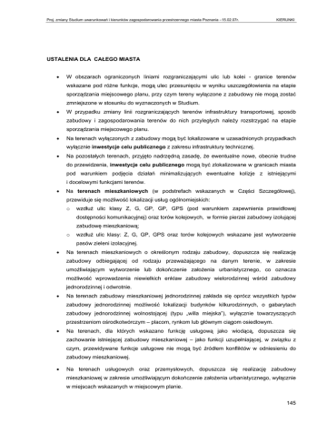 145 USTALENIA DLA CAŁEGO MIASTA • W obszarach