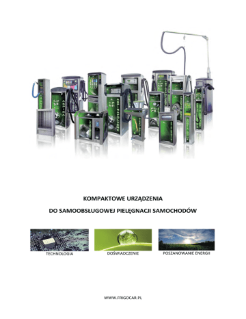 KOMPAKTOWE URZĄDZENIA DO SAMOOBSŁUGOWEJ PIELĘGNACJI SAMOCHODÓW TECHNOLOGIA DOŚWIADCZENIE WWW.FRIGOCAR.PL POSZANOWANIE ENERGII A.D. PRODUZIONE S.R.L. jest uznanym włoskim producentem, który od 1997 dostarcza innowacyjne rozwiązania w zakresie samoobsługowej pielęgnacji samochodów. Dynamicznie rozwijająca się firma, posiada odpowiednie doświadczenie w udoskonalaniu i wdrażaniu nowych produktów, pracujących na całym świecie. Zaawansowana technologia 3D pozwala już na etapie projektowania, zoptymalizować wszystkie parametry pracy urządzeń. Klienci doceniają wysokiej jakości wykonanie ze stali nierdzewnej oraz możliwość spersonalizowanej konfiguracji. Przykładowe funkcje urządzeń: odkurzacz do samochodu kompresor powietrza do opon czernidło do opon czyszczenie tapicerki czyszczenie deski rozdzielczej czyszczenie felg odświeżanie dywaników dystrybutor zapachu dystrybutor płynu do mycia szyb dystrybutor wody dystrybutor płynu do spryskiwaczy Wyposażenie urządzeń: wykonanie ze stali nierdzewnej z wrzutnikiem monet lub żetonów zasilanie jedno- lub trójfazowe zestaw antyzamrożeniowy sterownik Siemens Przykładowe miejsce pracy urządzeń: myjnie samochodowe car spa stacje paliw parkingi obiektów handlowych salony dealerów samochodowych WWW.FRIGOCAR.PL URZĄDZENIA WIELOFUNKCYJNE KOMPRESOR POWIETRZA DO OPON Ze sprężarką wewnątrz urządzenia Ze sprężarką zewnętrzną Z manometrem na przewodzie ODKURZACZ DO SAMOCHODU Jednostanowiskowy Dwustanowiskowy WWW.FRIGOCAR.PL Z filtrem klasycznym DYSTRYBUTORY PRODUKTÓW CHEMICZNYCH Dystrybutor płynu do spryskiwaczy (zbiornik 120l) Dystrybutor zapachu Czyszczenie dywaników *rekomendowane produkty chemiczne firm Mafra oraz Allegrini DYSTRYBUTOR ŚCIERECZEK Urządzenie ścienne Urządzenie wolnostojące W celu uzyskania oferty handlowej zapraszamy do kontaktu: FRIGO Sp. z o.o. , ul. Dankowicka 39, 01-987 Warszawa tel: +48 22 864 44 70, email: [email protected] WWW.FRIGOCAR.PL Cztery rodzaje materiału