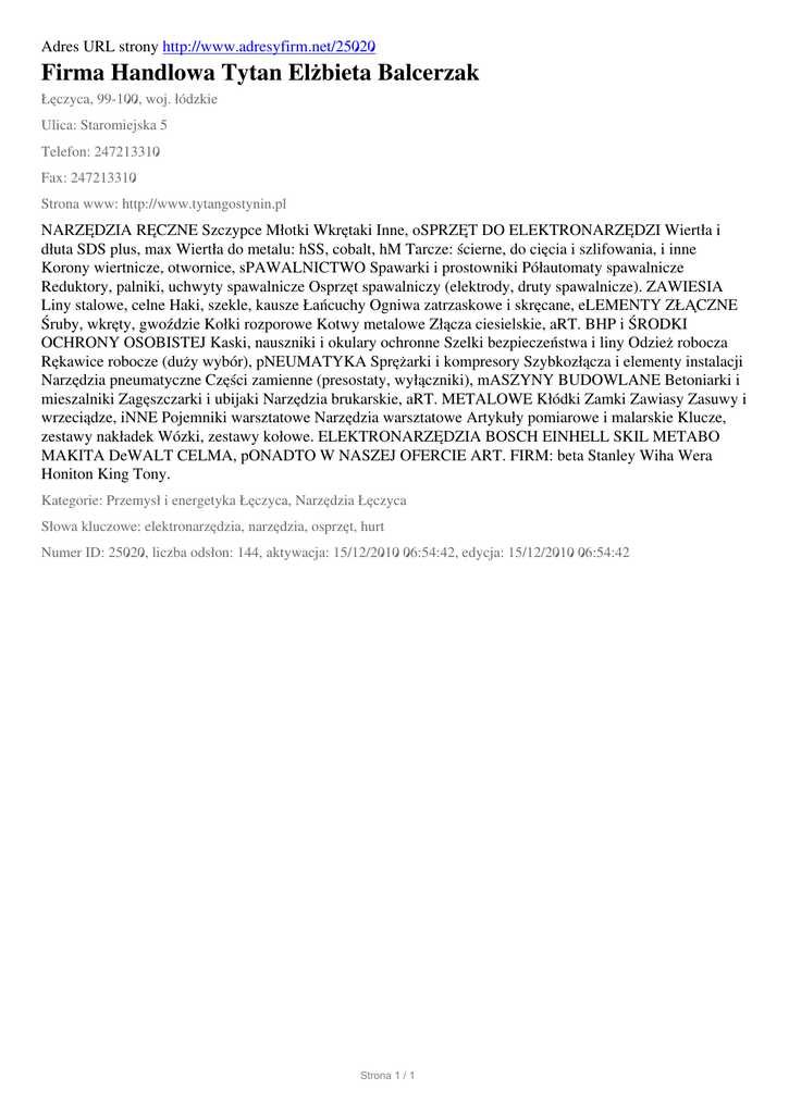 Firma Handlowa Tytan Elzbieta Balcerzak, Leczyca