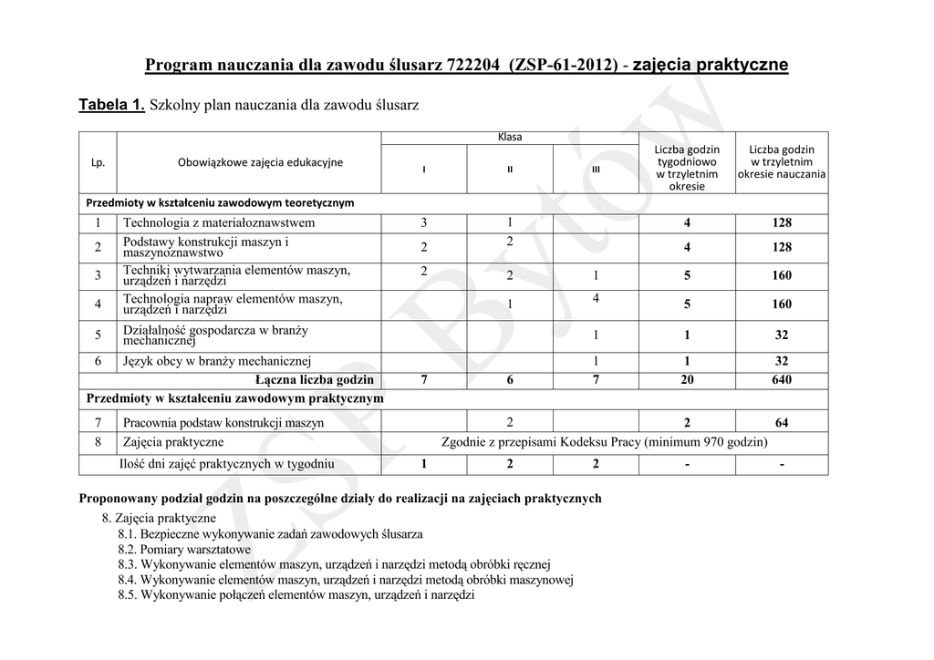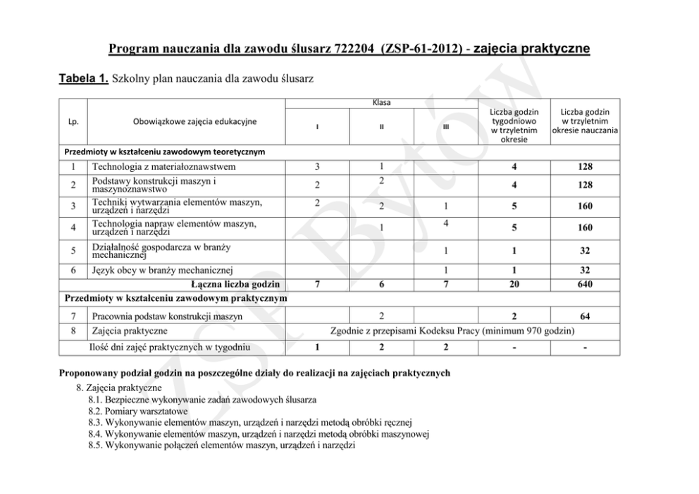 Program nauczania dla zawodu ślusarz 722204 (ZSP-61