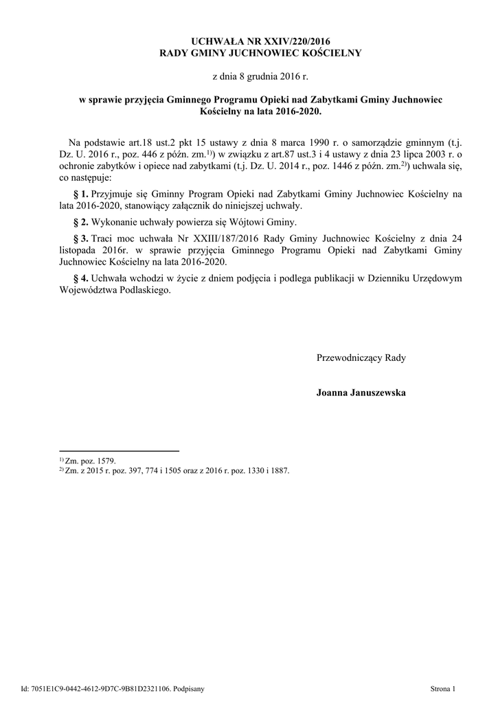 Gminny Program Opieki nad Zabytkami Gminy Juchnowiec Kościelny 2016-2020