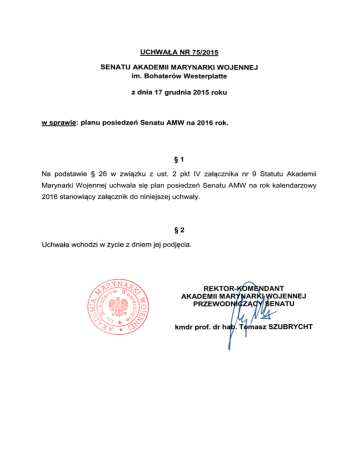 UCHWAŁA NR 75/2015 SENATU AKADEMII MARYNARKI