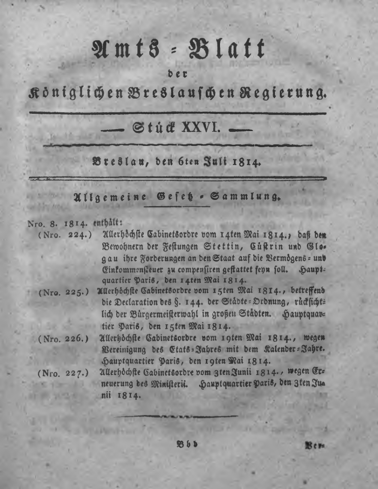 2t tte r ^ 5d)fłe ß a b i n e t d o r b r e » o m 1 9 te n SJlai 1 8 1 4 . / » e g e »