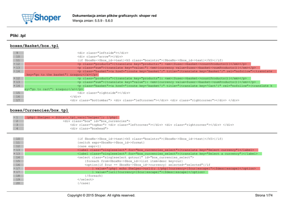 Dokumentacja zmian plików graficznych: shoper red