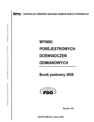 Burak pastewny 2006. Wyniki porejestrowych doświadczeń