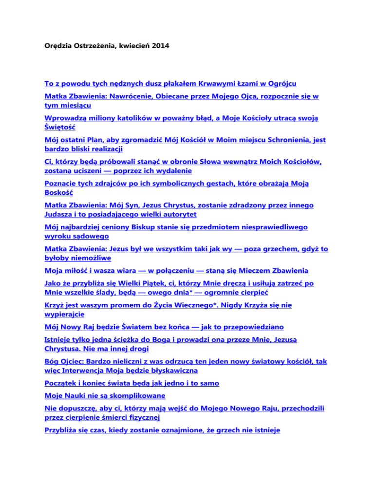 Orędzia Ostrzeżenia, kwiecień 2014 To z powodu tych nędznych
