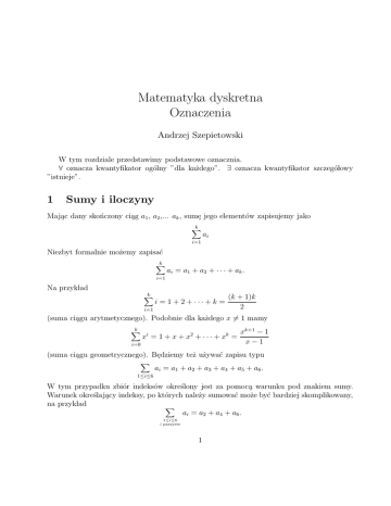 Maja̧c dany skończony cia̧g a1 , a2 ,... ak , sumȩ jego elementów zapisujemy jako