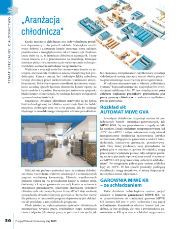 T E M AT S P E C J A L N Y : C H Ł O D N I C T W O „Aranżacja chłodnicza” Każda aranżacja chłodnicza jest indywidualnym projektem dopasowanym do potrzeb zakładu. Największe możliwości doboru i ustawienia komór stwarzają nowe zakłady, projektowane z uwzględnieniem takich inwestycji. Znakiem czasu stało się to, że instalacje chłodnicze zajmują ok. 3 razy więcej miejsca, niż to przeznaczone na produkcję. Istniejące mniejsze piekarnie zmuszone są do wykorzystania wolnej powierzchni, nierzadko natrafiając na ograniczenia. Wyjściem z sytuacji może być montowanie komór na zewnątrz, zlicowanych frontem ze ścianą zewnętrzną hali produkcyjnej. Komory muszą być zasłonięte lekką zabudową (wiatą) chroniącą przed niekorzystnymi warunkami atmosferycznymi. Takie rozwiązanie umożliwia systemowy, wyjątkowo szczelny sposób łączenia elementów komór oparty na bazie rowków i wpustów. Korzystne jest ustawienie sprężarki blisko komór chłodniczych, by uniknąć kosztów związanych z prowadzeniem instalacji. Najczęściej instalacje chłodnicze ustawione są na końcu linii technologicznej (w bliskim sąsiedztwie linii do bułek, pieczywa drobnego) oraz vis-à-vis pieców, tak by uniknąć zbędnego i czasochłonnego transportu wózków po zakładzie. Nikt już nie próbuje podważać tezy, że systemy chłodnicze służą wyzwoleniu walorów smakowych i aromatycznych poprzez wydłużoną fermentację. Filozofia współczesnych piekarni opiera się na prowadzeniu kęsów w niskiej temp. dodatniej, a krzywa garowania ma swój koniec w automacie chłodniczo-garowniczym. Elastyczne sterowanie systemów chłodniczych oferowanych przez firmę MIWE daje swobodę prowadzenia dowolnej krzywej garowania. To bardzo ważne dla piekarni; w ten sposób program dopasowany jest dokładnie do produktu, a nie produkt do programu. Obok jakości, za wykorzystaniem systemów chłodniczych przemawiają: wygoda pracy, rozdzielenie etapu narabiania ciasta i odpieku (eliminacja pracy w godzinach nocnych), jak 36 Przegląd Piekarski i Cukierniczy maj 2015 też ekonomia. Dotychczasowi użytkownicy instalacji chłodniczych notują znaczący wzrost obrotu pieczywa przestawionego na odroczony proces garowania. W sektorze maszynowym to właśnie „chłodnicze systemy” będą najliczniejszymi i największymi inwestycjami najbliższych lat. W tzw. międzyczasie poza chlebem większość produktów prowadzona jest przez procesy chłodnicze – zwłaszcza wydłużony proces garowania. Rozkład sił: AUTOMAT MIWE GVA Inwestycje chłodnicze rozpocząć można od pojedynczych komór mroźniczo-garowniczych, jak MIWE GVA. Są one projektowane z reguły na kilka wózków. Dzięki spektrum temperaturowemu (od -20°C do +40°C) i wilgotnościowemu mają niemal nieograniczone możliwości zastosowania (szybkie schłodzenie, długi proces garowania w niskich temp. dodatnich, intensywne garowanie, przechowywanie). Przy dużej produkcji, kęsy prowadzone do pełnej gary w automacie, gotowe do odpieku, mogą przewyższyć wydajność pieców. Aby odciążyć godziny szczytu pieczenia wprowadzony został w automacie MIWE GVA program zwany „wtórnym schłodzeniem”. Po osiągnięciu pełnej gary system schładza kęsy do +10°C. W ten sposób produkty podlegają stabilizacji i mogą stopniowo, w miarę dyspozycyjności pieca zostać odpieczone. GAROWNIA MIWE KR – ze schładzaniem Takie działania technologiczne można podjąć również w komorze garowniczej MIWE KR, bo w przeciwieństwie do tradycyjnej garowni MIWE GR komora KR jest w pełni izolowana i ma opcję schładzania. Konstrukcja obydwu komór jest podobna, są bez podłogi, ale moc i powierzchnia parowników w KR są w stanie schłodzić wygarowany produkt do +5°C, co daje szersze możliwości technologiczne, choćby dłuższe leżakowanie ciasta. Wzrastająca świadomość piekarzy skłania często do zakupu tej komory. Podkreślana jest uniwersalność urządzenia, co jest zasadne choćby w okresie letnim, gdzie wysoka temperatura w pracowni może niekorzystnie oddziaływać na procesy garownicze. Szokowe schładzanie Im większy zakład produkcyjny, tym bardziej konieczny jest rozkład sił w technice chłodzenia. Rozbudowując systemy chłodnicze moce produkcyjne zakładu są wykorzystane bardziej efektywnie. Nie da się za pomocą jednej komory mroźniczo-chłodniczej poddać procesom chłodniczym pełnego asortymentu pieczywa drobnego (szczególnie dziś, kiedy piekarnie cechuje wieloasortymentowość). Po pierwsze powierzchnia chłodnicza może okazać się niewystarczająca, po drugie ustawiony min. kilkugodzinny program długiego garowania zablokuje komorę na ten czas dla innych produktów. Trafnym uzupełnieniem instalacji chłodniczej jest komora szokowego schładzania (MIWE SF), która usprawnia przeprowadzenie procesu schładzania ciasta. Firma MIWE oferuje 2 rodzaje komór szokowego schładzania: nadmuchowe (do schładzanie kęsów na wózkach) oraz najnowsze dwufunkcyjne: zasysowo-nadmuchowe. Te drugie pozwalają na szybkie schłodzenie kęsów zarówno na wózkach, jak i w kastlach (tu: funkcja zasysowa). Dwufunkcyjna komora zasysowo-nadmuchowa idealnie nadaje się do piekarni, gdzie produkowane jest pieczywo w procesie odroczonego garowania na wózkach, ale i pieczywo do odpieku sklepowego w specjalnych kastlach z otworami. Odpiek sklepowy ma mniejszy udział w całej produkcji chłodniczej (ok. ¼), ale jest bardzo ważnym sektorem zwiększającym rynek zbytu i umożliwiającym szersze dotarcie do klienta. Odpiek sklepowy Dla zakładów oferujących pieczywo odpiekane w sklepach firma MIWE proponuje bardzo wygodną technologię wydłużonego prowadzenia kęsów wraz z systemem ich bezpiecznego transportowania. Metoda dostosowana jest do specjalnych wymagań odpieku wizualnego, gdzie największym wyzwaniem jest powtarzalna wysoka jakość, bieżąca dostępność oraz ograniczenie lokalowe. Technologia MIWE smar