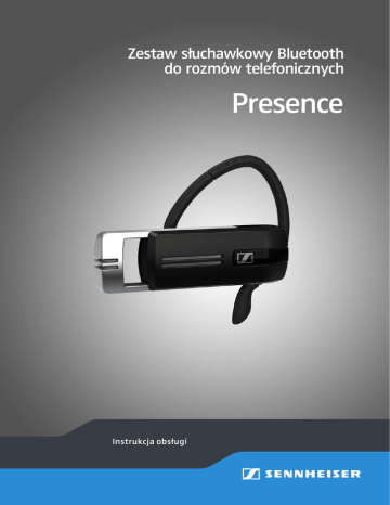 Zestaw słuchawkowy Bluetooth do rozmów telefonicznych Presence Instrukcja obsługi Spis treści Spis treści Ważne informacje dotyczące bezpieczeństwa . . . . . . . . . . . . . . . . . . . . . . . . 2 Presence – Zestaw słuchawkowy Bluetooth . . . . . . . . . . . . . . . . . . . . . . . . . . 4 Zawartość opakowania . . . . . . . . . . . . . . . . . . . . . . . . . . . . . . . . . . . . . . . . . . . . 5 Charakterystyka produktu . . . . . . . . . . . . . . . . . . . . . . . . . . . . . . . . . . . . . . . . . 6 Zestaw słuchawkowy Presence . . . . . . . . . . . . . . . . . . . . . . . . . . . . . . . . . . 6 Akcesoria do ładowania . . . . . . . . . . . . . . . . . . . . . . . . . . . . . . . . . . . . . . . . . 6 Przegląd piktogramów. . . . . . . . . . . . . . . . . . . . . . . . . . . . . . . . . . . . . . . . . . 7 Przegląd wskazań kontrolki LED . . . . . . . . . . . . . . . . . . . . . . . . . . . . . . . . . 8 Przegląd przycisków . . . . . . . . . . . . . . . . . . . . . . . . . . . . . . . . . . . . . . . . . . . . 9 Przygotowanie zestawu słuchawkowego do działania. . . . . . . . . . . . . . . . 11 Ładowanie akumulatora zestawu słuchawkowego . . . . . . . . . . . . . . . . 12 Korzystanie z zestawu słuchawkowego. . . . . . . . . . . . . . . . . . . . . . . . . . 14 Indywidualne dopasowanie zestawu słuchawkowego i jego noszenie . . 14 Uruchomienie zestawu słuchawkowego i jego podłączenie. . . . . . . . . 16 Wyłączenie zestawu słuchawkowego. . . . . . . . . . . . . . . . . . . . . . . . . . . . 17 Uzyskanie informacji o dostępnym czasie rozmów. . . . . . . . . . . . . . . . 17 Zmiana głośności. . . . . . . . . . . . . . . . . . . . . . . . . . . . . . . . . . . . . . . . . . . . . . 18 Nawiązywanie połączeń przy użyciu zestawu słuchawkowego . . . . . 19 Zarządzanie wieloma połączeniami . . . . . . . . . . . . . . . . . . . . . . . . . . . . . 21 Czyszczenie i konserwacja zestawu słuchawkowego . . . . . . . . . . . . . . . . . 22 Jeśli pojawią się problemy. . . . . . . . . . . . . . . . . . . . . . . . . . . . . . . . . . . . . . . . . 23 Gdy znajdziemy się poza zasięgiem transmisji Bluetooth . . . . . . . . . . 24 Dane techniczne . . . . . . . . . . . . . . . . . . . . . . . . . . . . . . . . . . . . . . . . . . . . . . . . . 25 Deklaracje producenta . . . . . . . . . . . . . . . . . . . . . . . . . . . . . . . . . . . . . . . . . . . . 26 1 | Presence Ważne informacje dotyczące bezpieczeństwa Ważne informacje dotyczące bezpieczeństwa E Przed rozpoczęciem użytkowania produktu należy uważnie i w całości przeczytać tę instrukcję obsługi. E Gdy przekazujemy urządzenie osobom trzecim, zawsze należy dołączać do niego tę instrukcję obsługi. E Nie wolno używać wyraźnie uszkodzonego produktu. Zapobieganie uszkodzeniom słuchu i innym problemom zdrowotnym oraz wypadkom E Nie wolno dokonywać odsłuchu z dużą głośnością przez długi czas w celu uniknięcia uszkodzenia słuchu. E Należy zawsze zachować odległość przynajmniej 10 cm między urządzeniem a wszczepionym rozrusznikiem serca lub defibrylatorem, ponieważ wytwarza ono stałe pole magnetyczne. E Urządzenie, akcesoria oraz części opakowań należy trzymać z dala od dzieci oraz zwierząt domowych w celu zapobieżenia wypadkom i uniknięcia ryzyka połknięcia, a nawet uduszenia. E Nie należy używać urządzenia w miejscach, które wymagają specjalnej uwagi (np. w trakcie kierowania pojazdami). E Nie wolno zakładać zestawu słuchawkowego podczas jego ładowania, ponieważ akumulator może mocno nagrzewać się. Zapobieganie uszkodzeniom urządzenia oraz jego niesprawności E Produkt należy utrzymywać w stanie suchym i nie należy narażać go na działanie wysokich temperatur (suszarki do włosó w, grzejniki, długotrwałe wystawienie na bezpośrednie działanie promieni słonecznych itp.) w celu uniknięcia korozji lub deformacji. E Należy używać tylko dodatków oraz akcesoriów dostarczonych lub rekomendowanych przez firmę Sennheiser. E Produkt należy czyścić suchą delikatną tkaniną. E Produktu należy używać tylko w miejscach, gdzie dozwolone jest korzystanie z bezprzewodowej łączności Bluetooth. Świadome użytkowanie / odpowiedzialność Zestaw słuchawkowy Presence jest przeznaczony do wspó łpracy z telefonami komórkowymi, smartfonami oraz innymi urządzeniami zgodnymi z technologią Bluetooth, które zapewniają obsługę funkcji „hands free profile” (HPF), „headset profile” (HSP) lub „advanced audio distribution profile” (A2DP). Służy on do zapewnienia komunikacji bezprzewodowej z wykorzystaniem połączenia Bluetooth. Przez niewłaściwe użytkowanie rozumie się każde użycie produktu w innym celu i aplikacji niż te, które zostały przedstawione w tej instrukcji obsługi. Firma Sennheiser nie ponosi żadnej odpowiedzialności za szkody wynikłe z niewłaściwego użytkowania tego produktu oraz jego akcesoriów. Firma Sennheiser nie ponosi żadnej odpowiedzialności za uszkodzenia urządzeń USB, które nie są zgodne ze specyfikacją USB. Firma Sennheiser nie ponosi odpowiedzialności za szkody wynikające z utraty połączenia z powodu wyładowania lub utraty właściwości akumulatorków lub przekroczenia zasięgu transmisji Bluetooth. Presence | 2 Ważne informacje dotyczące bezpieczeństwa Instrukcje bezpieczeństwa dotyczące akumulatorów W ekstremalnych przypadkach niewłaściwe użycie akumulatorów może doprowadzić do: OSTRZEŻENIE • • • • wybuchu pożaru wytworzenia dużej ilości ciepła pojawienia się dymu lub szkodliwych gazów Produktu z wbudowanym akumulatorem należy pozbywać się dostarczając go do specjalnego punktu zbiórki lub zwracając go do sprzedawcy. Po użyciu należy wyłączać zasilanie w urządzeniach zasilanych akumulatorami. Ładowania akumulatorów należy dokonywać w temperaturze pokojowej między 10°C/50°F a 40°C/104°F. Gdy akumulatory nie będą u