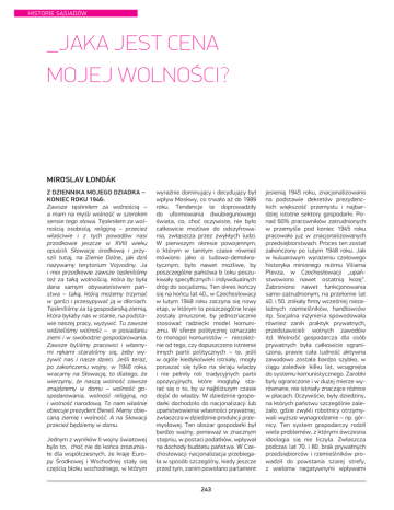 Historie sąsiadów _Jaka jest cena mojej wolności? Miroslav Londák Z dziennika mojego dziadka – koniec roku 1946: Zawsze tęskniłem za wolnością – a mam na myśli wolność w szerokim sensie tego słowa. Tęskniłem za wolnością osobistą, religijną – przecież właściwie i z tych powodów nasi przodkowie jeszcze w XVIII wieku opuścili Słowację środkową i przyszli tutaj, na Ziemie Dolne, jak dziś nazywamy terytorium Vojvodiny. Ja i moi przodkowie zawsze tęskniliśmy też za taką wolnością, która by była dana samym obywatelstwem państwa – taką, którą możemy trzymać w garści i przesypywać ją w dłoniach. Tęskniliśmy za tą gospodarską ziemią, która byłaby nas w stanie, na podstawie naszej pracy, wyżywić. Tu zawsze widzieliśmy wolność – w posiadaniu ziemi i w swobodzie gospodarowania. Zawsze byliśmy pracowici i własnymi rękami staraliśmy się, żeby wyżywić nas i nasze dzieci. Jeśli teraz, po zakończeniu wojny, w 1946 roku, wracamy na Słowację, to dlatego, że wierzymy, że naszą wolność zawsze znajdziemy w domu – wolność gospodarowania, wolność religijną, no i wolność narodową. To nam właśnie obiecuje prezydent Beneš. Mamy obiecaną ziemię i wolność. A na Słowacji przecież będziemy w domu. Jednym z wyników II wojny światowej było to, choć nie do końca zrozumiałe dla współczesnych, że kraje Europy Środkowej i Wschodniej stały się częścią bloku wschodniego, w którym wyraźnie dominujący i decydujący był wpływ Moskwy, co trwało aż do 1989 roku. Tendencje te doprowadziły do uformowania dwubiegunowego świata, co, choć oczywiste, nie było całkowicie możliwe do odszyfrowania, zwłaszcza przez zwykłych ludzi. W pierwszym okresie powojennym, o którym w tamtym czasie również mówiono jako o ludowo-demokratycznym, było nawet możliwe, by poszczególne państwa b loku poszukiwały specyficznych i indywidualnych dróg do socjalizmu. Ten okres kończy się na końcu lat 40., w Czechosłowacji w lutym 1948 roku zaczyna się nowy etap, w którym to poszczególne kraje zostały zmuszone, by jednoznacznie stosować radziecki model komunizmu. W sferze politycznej oznaczało to monopol komunistów – niezależnie od tego, czy dopuszczono istnienie innych partii politycznych – te, jeśli w ogóle kiedykolwiek istniały, mogły poruszać się tylko na skraju władzy i nie pełniły roli tradycyjnych partii opozycyjnych, które mogłyby starać się o to, by w najbliższym czasie dojść do władzy. W dziedzinie gospodarki dochodziło do nacjonalizacji lub upaństwowienia własności prywatnej, zwłaszcza w dziedzinie produkcji przemysłowej. Ten obszar gospodarki był bardzo ważny, ponieważ w znacznym stopniu, w postaci podatków, wpływał na dochody budżetu państwa. W Czechosłowacji nacjonalizacja przebiegała w sposób szczególny, kiedy jeszcze przed tym, zanim powołano parlament 243 jesienią 1945 roku, znacjonalizowano na podstawie dekretów prezydenckich większość przemysłu i najbardziej istotne sektory gospodarki. Ponad 60% pracowników zatrudnionych w przemyśle pod koniec 1945 roku pracowało już w znacjonalizowanych przedsiębiorstwach. Proces ten został zakończony po lutym 1948 roku. Jak w kuluarowym wyrażeniu czołowego historyka minionego reżimu Viliama Plevza, w Czechosłowacji „upaństwowiono nawet ostatnią kozę“. Zabroniono nawet funkcjonowania samo-zatrudnionym, na przełomie lat 40. i 50. znikały firmy wcześniej niezależnych rzemieślników, handlowców itp. Socjalna inżynieria spowodowała również zanik praktyk prywatnych, przedstawicieli wolnych zawodów itd. Wolność gospodarcza dla osób prywatnych była całkowicie ograniczona, prawie cała ludność aktywna zawodowo została bardzo szybko, w ciągu zaledwie kilku lat, wciągnięta do systemu komunistycznego. Zarobki były ograniczone i w dużej mierze wyrównane, nie istniały znaczące różnice w płacach. Oczywiście, były dziedziny, na których państwu szczególnie zależało, gdzie zwykli robotnicy otrzymywali wyższe wynagrodzenie – np. górnicy. Ten system gospodarczy rodził wiele problemów, z którymi ówczesna ideologia się nie liczyła. Zwłaszcza podczas lat 70. i 80. brak prywatnych przedsiębiorców i rzemieślników prowadził do powstania szarej strefy, z wieloma negatywnymi wpływami Historie sąsiadów i skutkami, które ostatecznie uwidoczniły się w zakresie przychodów budżetu państwa. Wielu rzemieślników, pracujących w przedsiębiorstwach państwowych często po pracy, ale również nawet w ramach czasu pracy, robiło tak zwane fuchy, czyli usługi dla innych ludzi, ale wynagrodzenie za nie nie było opodatkowane. Z dziennika mojego dziadka – koniec roku 1951: Kiedy przybyliśmy na Słowację, od Beneša dostaliśmy, bo tak się na to u nas zazwyczaj mówi, dom na południu państwa, po Węgrach, którzy odeszli1 po skończeniu wojny i porządny kawałek ziemi do zagospodarowania (chyba 20 hektarów) oraz jakieś przedmioty, rzeczy. Coś przywieźliśmy ze sobą też z Ziemi Dolnych, ziemia była urodzajna, wzięliśmy się do pracy i dobrze się nam wiodło. Moje już prawie dorosłe dzieci są dobrze wychowane i dobrze wykonują swoją pracę. Myślałem, że szybko będziemy mogli dokupić grunt i jakieś maszyny, ale teraz, kiedy zakładają te ich kołchozy, straciliśmy prawie wszystko. Grunty są chyba bezpowrotnie stracone. Będziemy musieli wyprowadzić się do jakiegoś większego miasta i tam szukać sobie innej pracy, ja w jakiejś fabryce, ale swoim dzieciom też muszę coś znaleźć. Jeszcze nam zostało coś z pieniędzy, które przywieźliśmy z Ziemi Dolnych, gdy sprzedaliśmy tam majątek. Podczas wprowadzania ustroju demokracji ludowej w Czechosłowacji, kiedy komuniści jeszcze ciągle musieli starać się o względy wyborców, stawiali się na pozycji przedstawicieli tak rzemieślników, samo-zatrudnionych, jak i drobnych rolników, c