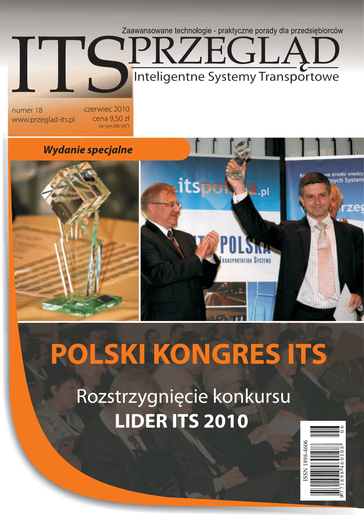 9 771898 460108 ISSN 1898-4606 06 OD REDAKTORA NACZELNEGO ! Redaktor naczelny: Jacek Doliński [email protected] Redakcja: Iwona Barbara Litwin (zastępca redaktora naczelnego, redaktor prowadzący) [email protected] Robert Jędrzejczak (sekretarz redakcji) [email protected] Ewa Wojtowicz-Topiłko (redakcja językowa) Jerzy Wróblewski (tłumaczenie i weryfikacja tekstów angielskich) Krzysztof Jamrozik (ITS dla BRD) Marek Tadeusz Krawczyk Piotr Krukowski Marek Litwin Jakub Młyńczak (telematyka) Krzysztof Modelewski Mirosław Siergiejczyk Rada Programowa „Przeglądu ITS”: prof. dr inż. Wojciech Suchorzewski – przewodniczący (Politechnika Warszawska) dr inż. Mariusz Kaczmarek (Politechnika Poznańska) prof. dr hab. Jerzy Mikulski (Politechnika Śląska) prof. dr hab. Roman Nagórski (Politechnika Warszawska) dr inż. Jacek Oskarbski (Politechnika Gdańska) dr inż. Andrzej Urbanik (Instytut Badawczy Dróg i Mostów) prof. dr hab. inż. Wojciech Wawrzyński (Politechnika Warszawska) prof. nadzw. dr inż. Kornel B. Wydro (Wyższa Szkoła Techniczno-Ekonomiczna w Warszawie) prof. dr Kazimierz Zaraś (Université du Québec) Dział reklamy i marketingu: email: [email protected] SZANOWNI CZYTELNICY! „Przegląd ITS” wraca do Państwa po rocznej przerwie. W ubiegłym roku, z powodu pogorszenia ogólnej sytuacji ekonomicznej oraz braku dostatecznej liczby sponsorów i reklamodawców, zmuszeni byliśmy zawiesić wydawanie drukowanej wersji czasopisma. W tym czasie kontynuowaliśmy działalność na stronie internetowej: www.przeglad-its.pl, publikując biuletyny poświęcone aktualnym sprawom. Dodam, że wszystkim prenumeratorom zwróciliśmy należność za niewykorzystaną prenumeratę. Wznawiamy wydawanie drukowanej wersji „Przeglądu ITS” specjalnym numerem kongresowym. Od września planujemy wydawanie pisma jako dwumiesięcznika. Finalizujemy sprawy związane z finansowaniem tego przedsięwzięcia. Pragnę również Państwa poinformować, że obowiązki wydawcy czasopisma przejęło Stowarzyszenie „ITS Polska”. Zmiana ta zwiększa szanse utrzymania się pisma na rynku wydawniczym i jego dalszego rozwoju. Prenumerata: Warunki na stronie 38 Prenumerata w internecie: www.przeglad-its.pl Redakcja: ul. Trębacka 4, 00-074 Warszawa tel. 22 630 99 07; faks 22 630 99 12 e-mail: [email protected] www.przeglad-its.pl Wydawca: Stowarzyszenie ,,ITS Polska” ul. Trębacka 4, 00-074 Warszawa tel. 22 630 99 07; faks 22 630 99 12 Projekt graficzny: Maria Dolińska DTP: Agencja Wydawnicza BARTGRAF tel. 22 625 55 48 e-mail: [email protected] Druk: Z.U.P. HARO Nakład: 2000 egzemplarzy Czerwcowe wydanie poświęcone jest materiałom z III Polskiego Kongresu ITS, który niedawno się zakończył. Zgodna opinia uczestników tego wydarzenia głosi, że był to duży sukces – starannie wybrana tematyka poszczególnych sesji odpowiadała bieżącym zagadnieniom związanym z rozwojem inteligentnych systemów transportowych w Polsce, a prezentacje, z konieczności ograniczone do 15 minut, były bardzo interesujące. Numer otwiera obszerne sprawozdanie z obrad, a po nim następują wnioski opracowane przez Komisję Wnioskową, powołaną na otwierającej sesji kongresu. Przedstawiamy też relację z gali wręczenia nagród konkursu Lider ITS. Fotoreportaż zamieszczamy na stronach 20–21. Dużą część numeru poświęciliśmy tematowi, który dotyczy wszystkich użytkowników polskich dróg – poborowi opłat za ich korzystanie. Wyraz „myto”, obecnie już archaiczny, ma szansę powrócić do codziennego języka. Ponadto, mogą Państwo przeczytać wybrane artykuły na inne tematy prezentowane podczas kongresu. Copyright © PRZEGLĄD ITS Przedruk, kopiowanie lub powielanie w jakiejkolwiek formie w części lub całości bez pisemnej zgody wydawcy jest zabronione. Składam gratulacje organizatorom III Polskiego Kongresu ITS, mając nadzieję, że przyszłoroczna edycja będzie jeszcze bardziej interesująca, a Państwu, jak zwykle, życzę miłej i ciekawej lektury. Redakcja nie odpowiada za treść reklam, ogłoszeń i artykułów sponsorowanych. Redakcja zastrzega sobie prawo do skrótów oraz do niepublikowania tekstów niezgodnych z charakterem pisma i interesem wydawcy. Jacek Doliński, PMP redaktor naczelny 3 PRZEGLĄD ITS CZERWIEC 2010 ! Dear Readers, The “ITS Review” comes back to you after a year break. Last year, because of the deterioration of general economic situation and the lack of sufficient number of sponsors and advertisers, we were forced to suspend issuing the printed version of the journal. During this period we continued our activity on the website: www.przeglad-its.pl, publishing bulletins on current issues. I would like to add, that all subscribers were reimbursed the amount due for the unused subscription. We resume issuing the printed versions of the “ITS Review” with a special congress issue. From September, we plan issuing the journal as a bimonthly. We have been finalising issues related to this project financing. I would also like to inform you that the Association “ITS Polska” has taken over the duties of journal publisher. This change increases the chances of journal’s remaining on the publishing market and of its further development. The June issue is devoted to materials of the 3rd Polish ITS Congress, which has recently finished. Unanimous opinion of this event participants is that it was a great success, carefully selected topics of individual sessions corresponded to the current issues related to the ITS systems development in Poland and the presentations, out of necessity condensed to 15 minutes, were very interesting. The issue starts with an extensive report of the debate, followed by the conclusions prepared by the Conclusions Commission appointed on the opening session of the congress. We publish also a report on the award gala of the “ITS Leader” competition. A picture story is givenon pages 20 and 21. A large part of the issu